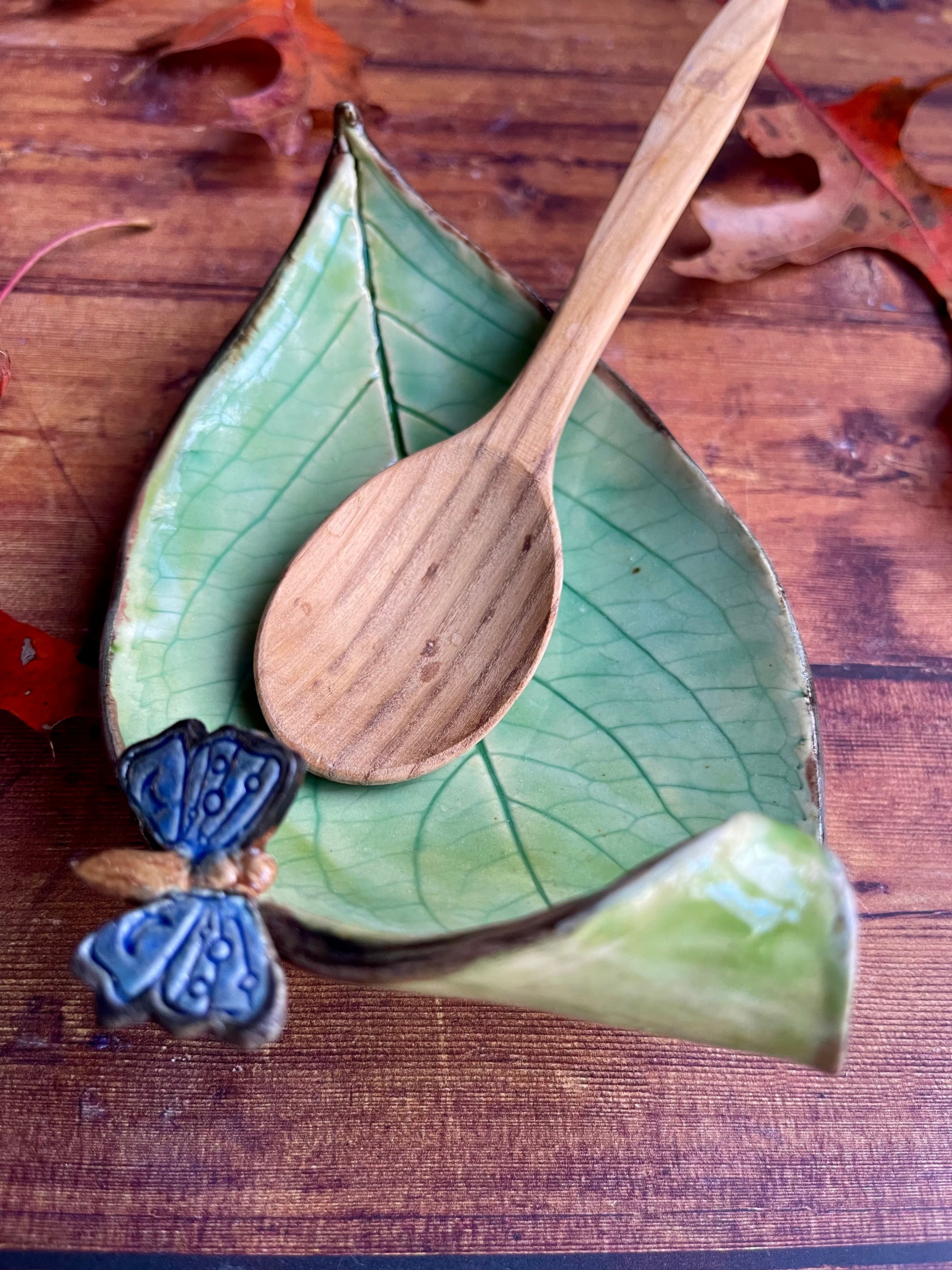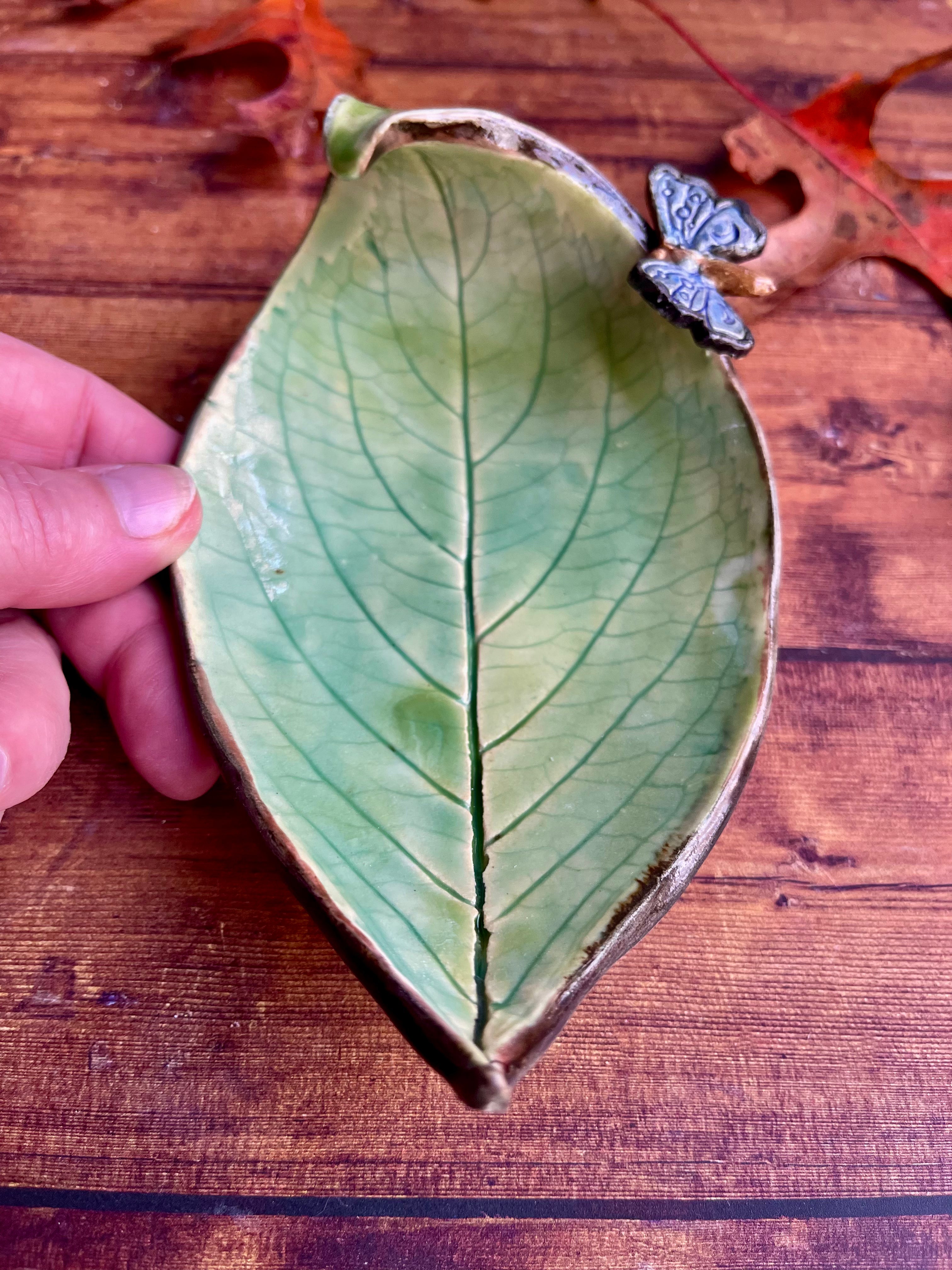 Leaf plate with a butterfly. Perfect for candles, trinkets, spoon rest