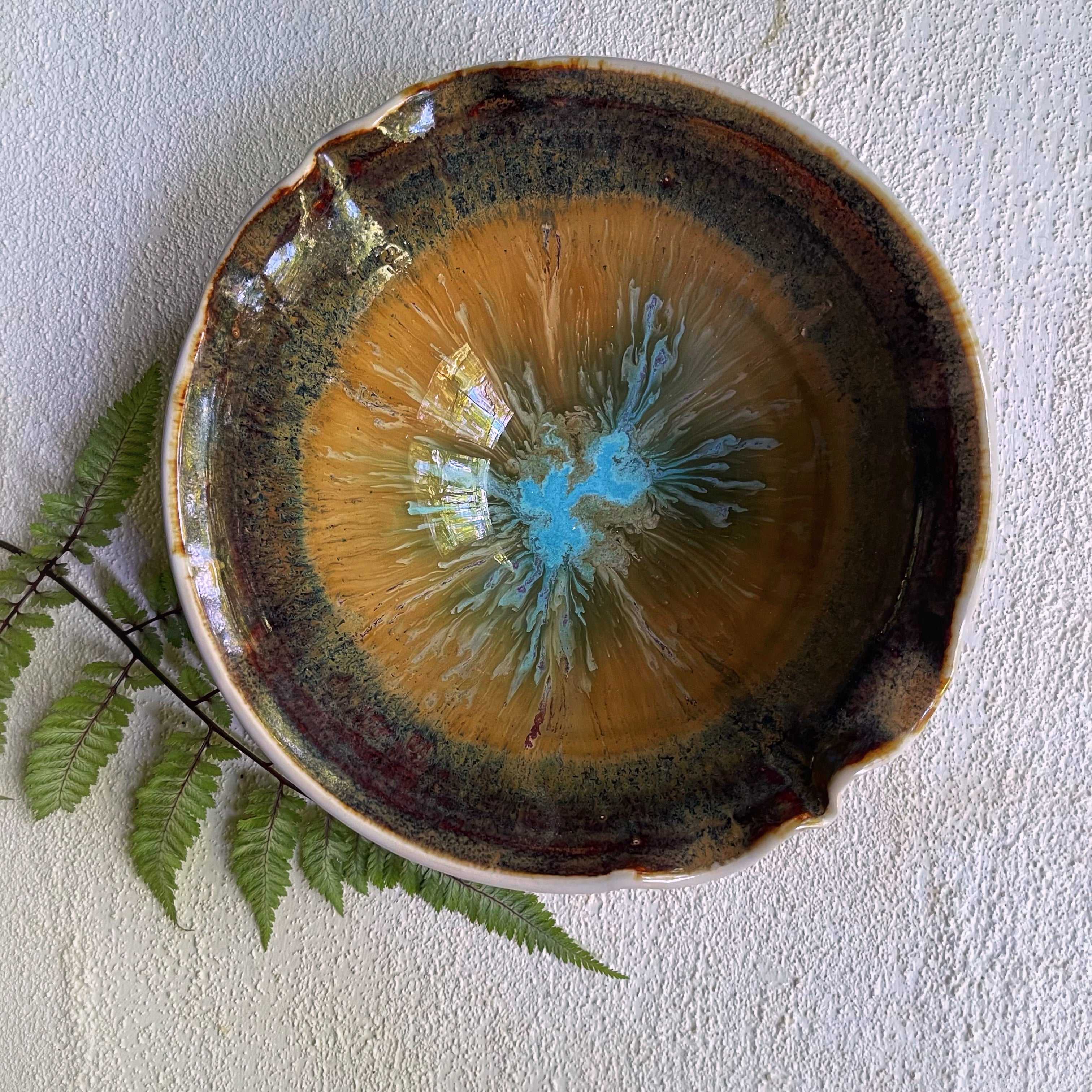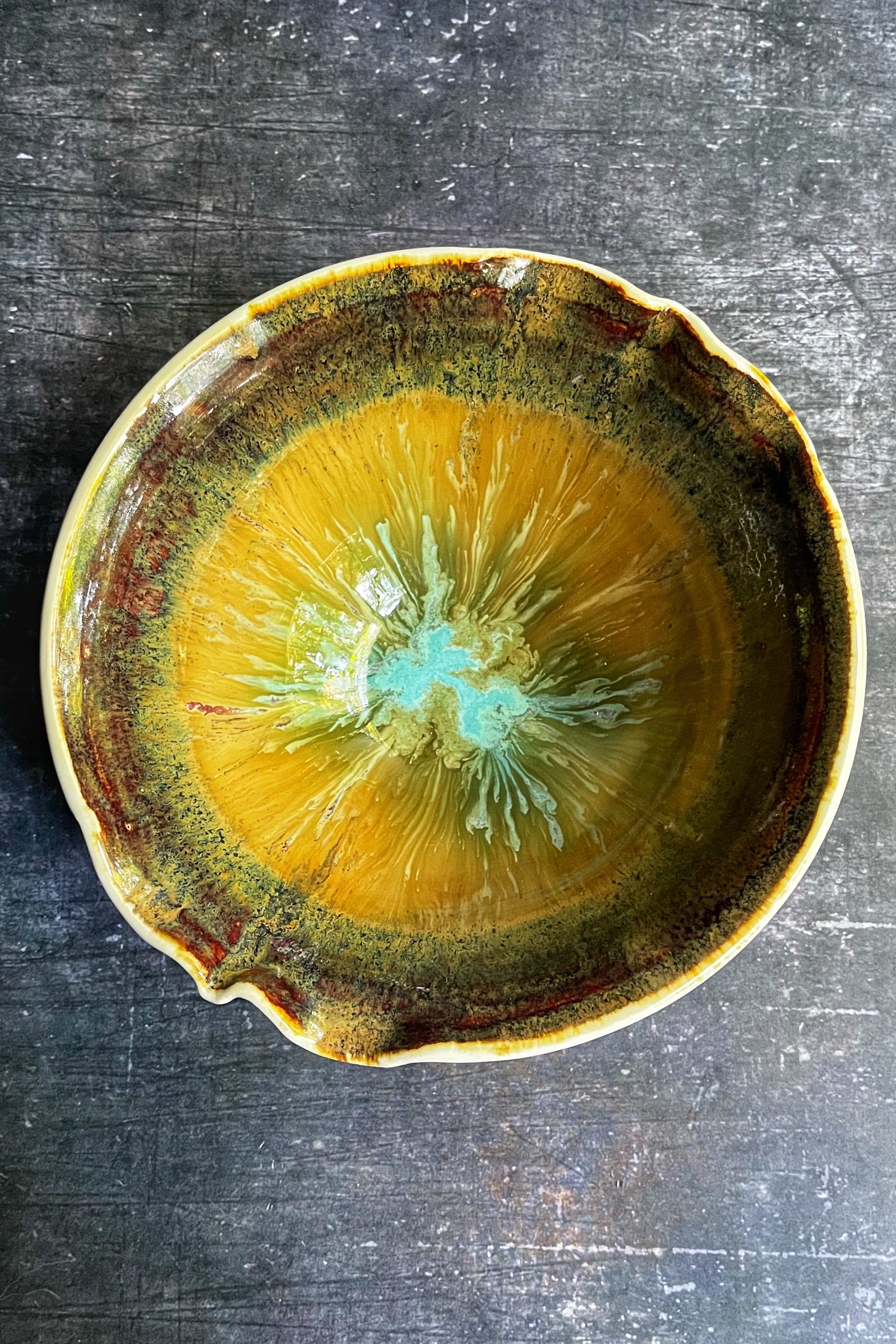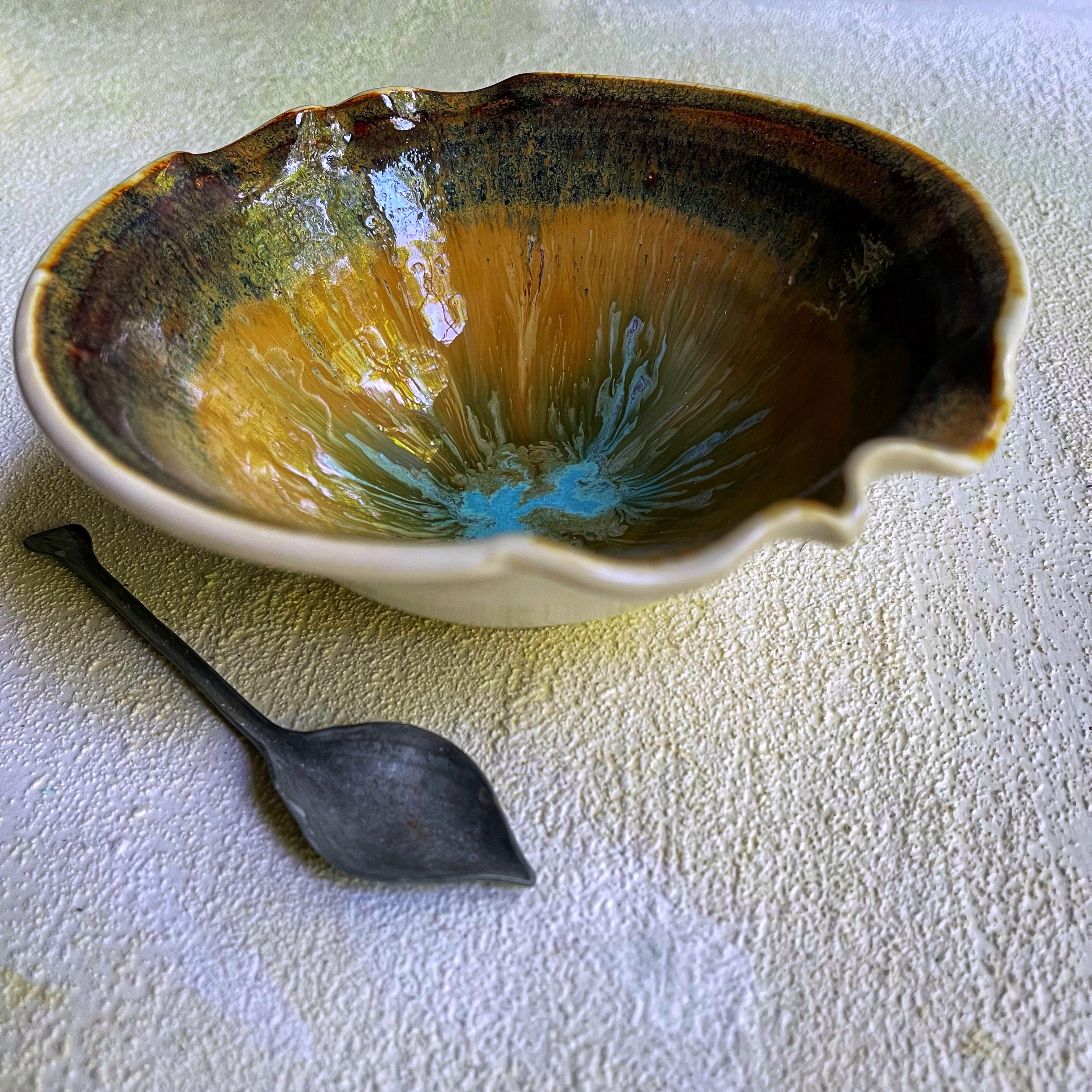 This modern ceramic bowl was wheel thrown and altered into a quatrefoil (Arabesque) shape.