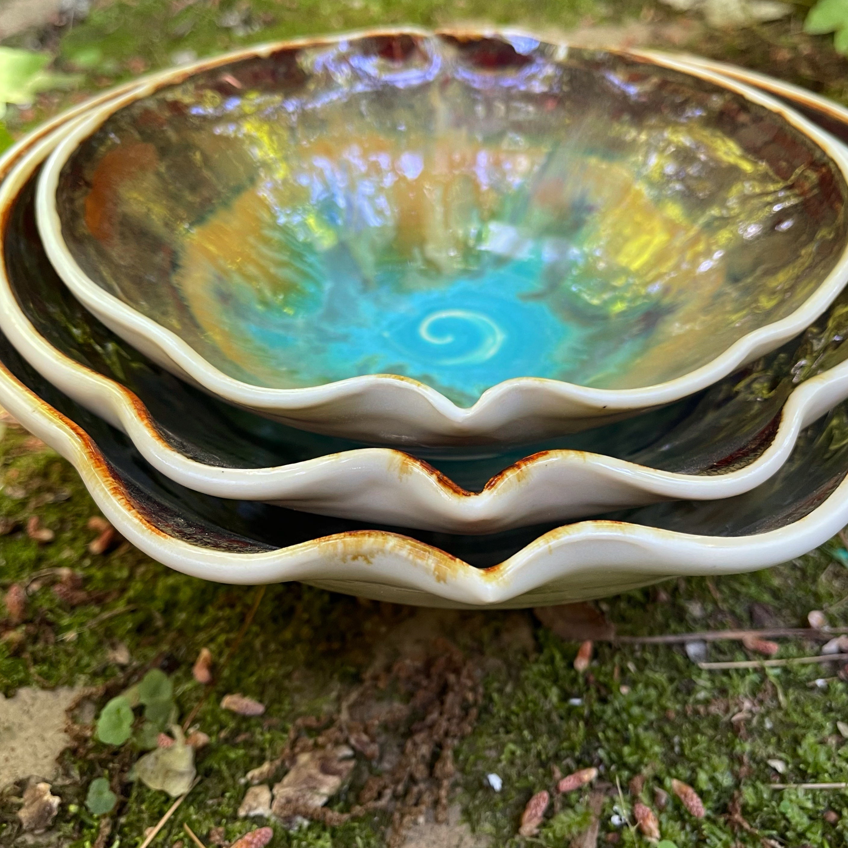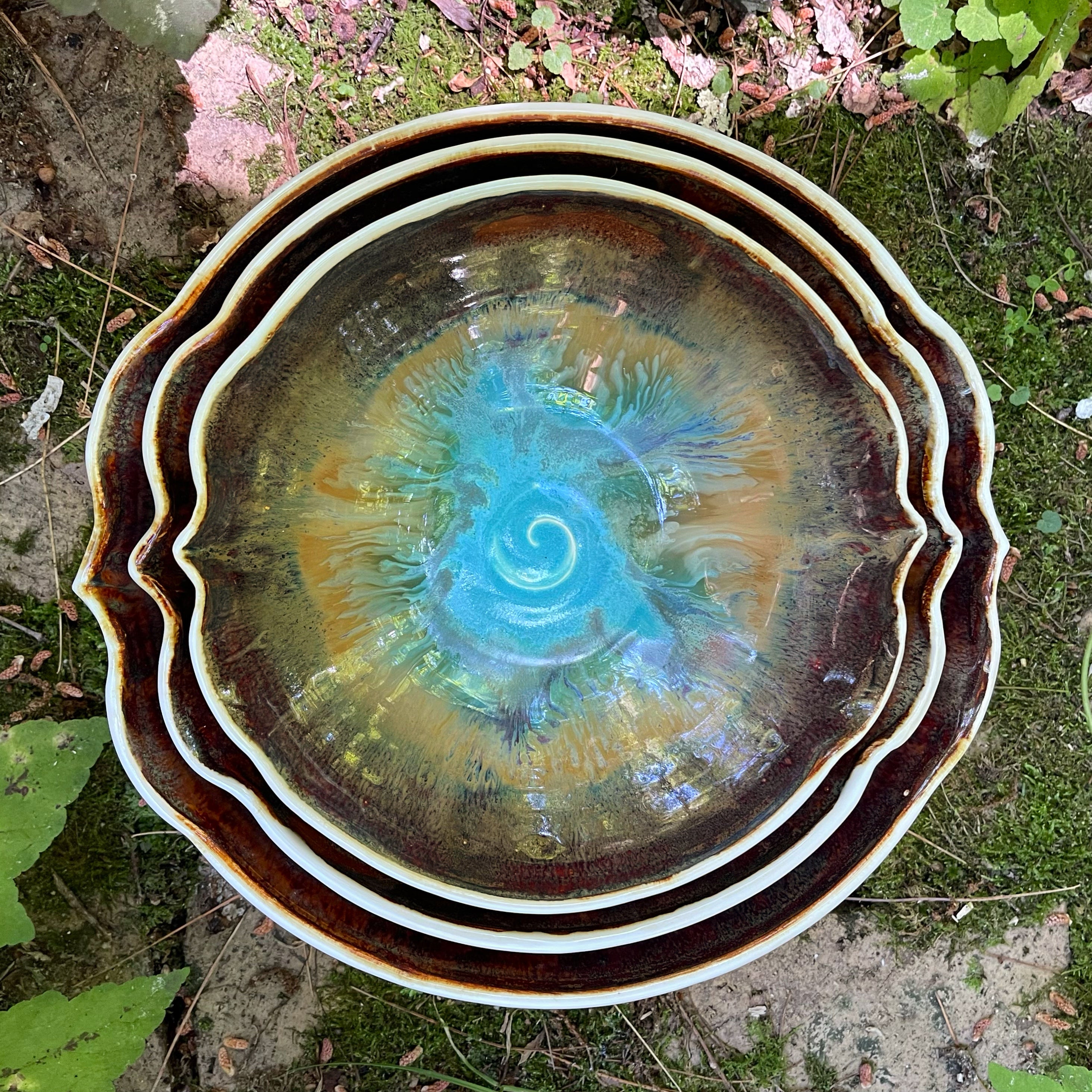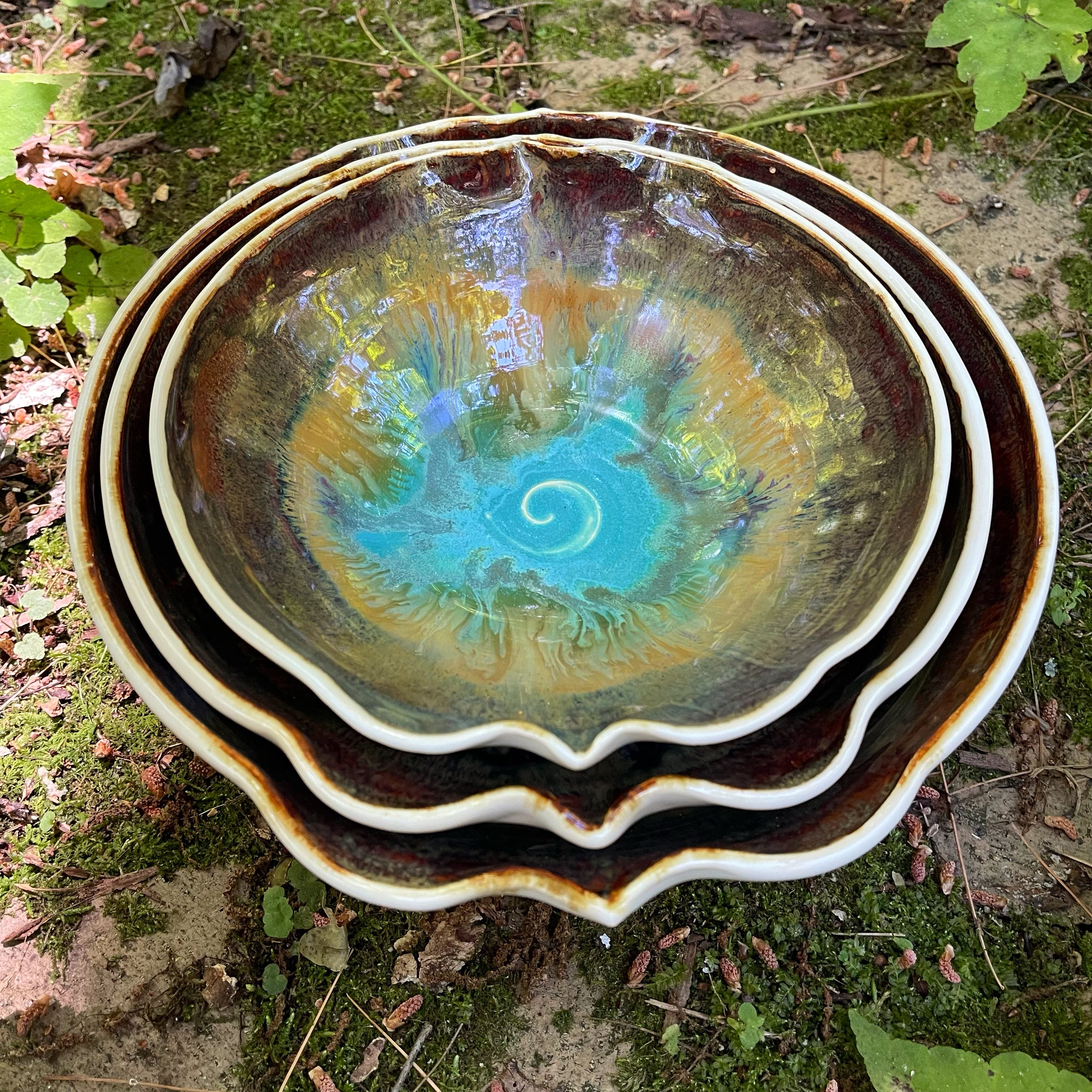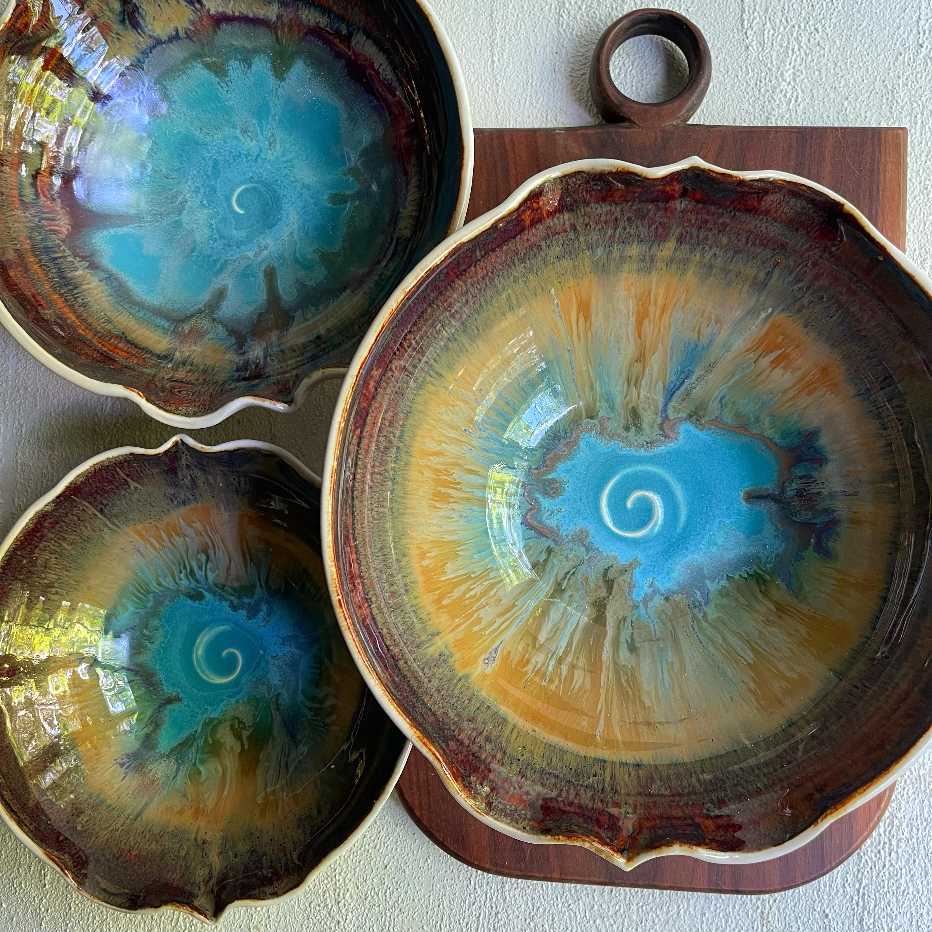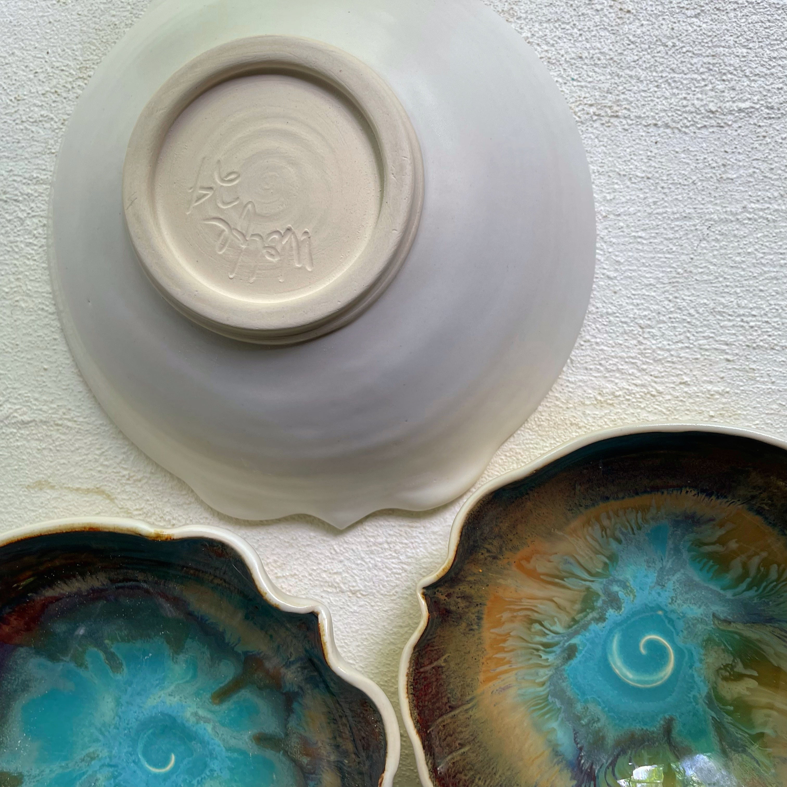 Minimalist geometric serving bowls are modern art for your table. They are wheel thrown and altered into quatrefoils, the Arabesque shape used in Moroccan tiles.