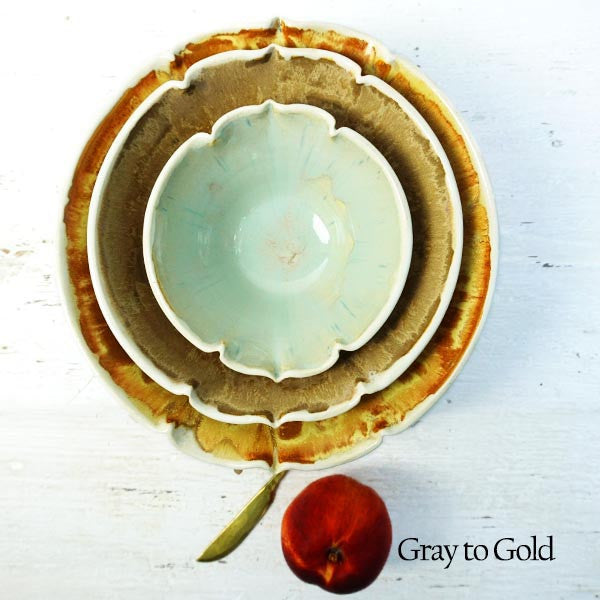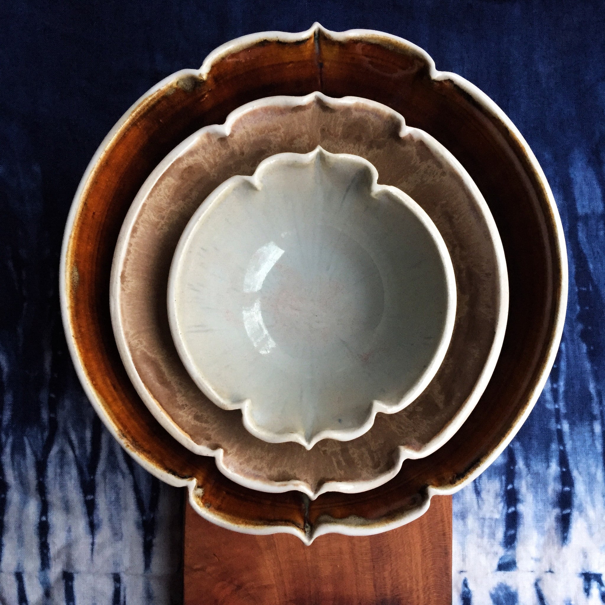 Minimalist geometric serving bowls are modern art for your table. They are wheel thrown and altered into quatrefoils, the Arabesque shape used in Moroccan tiles.