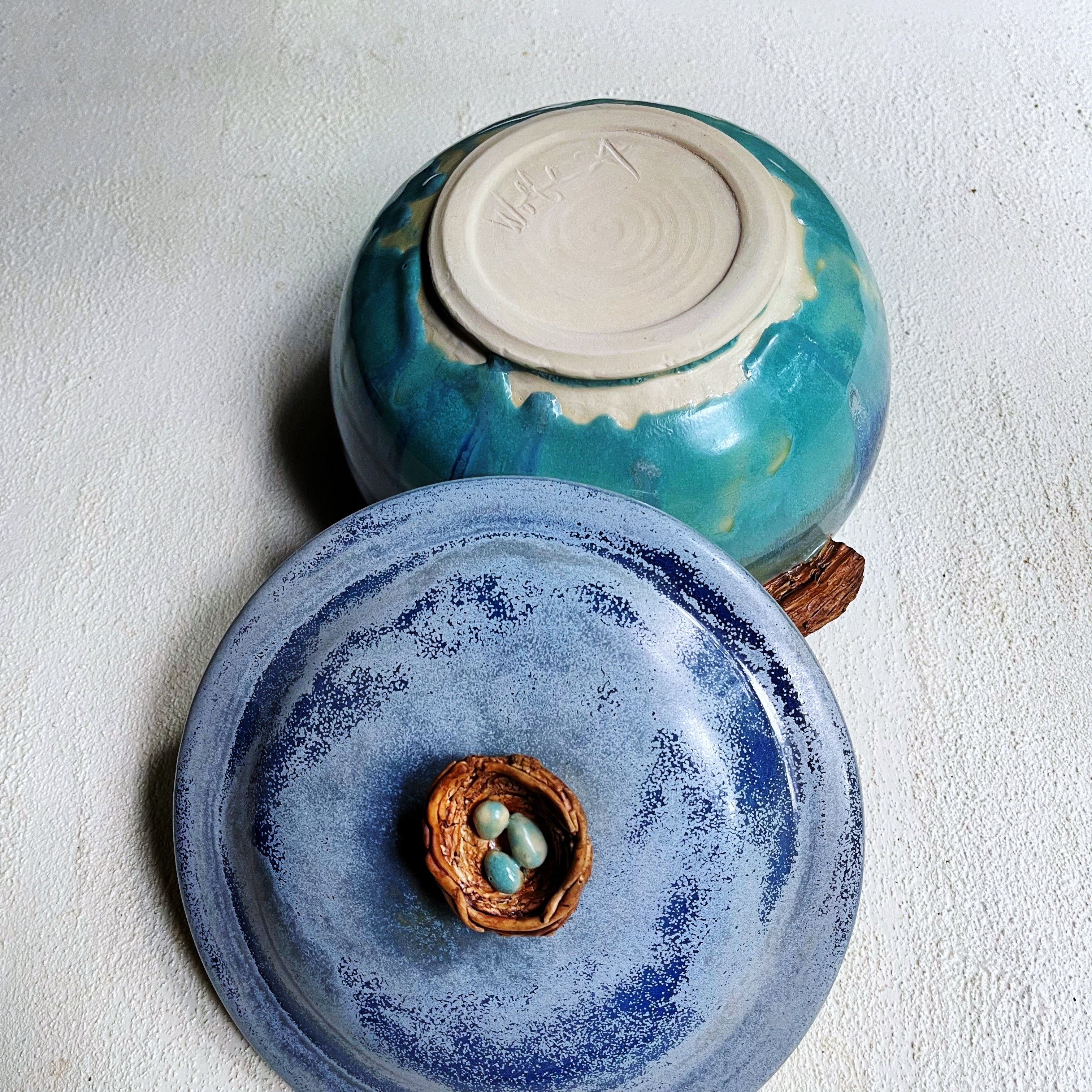 As many of you know from social media, this glaze was applied very thick and went through a special firing. The result is that the colors are intense and extremely beautiful. However, the drips on the bottom are slightly irregular. This piece is fully functional and the colors cannot be easily repeated if ever.
