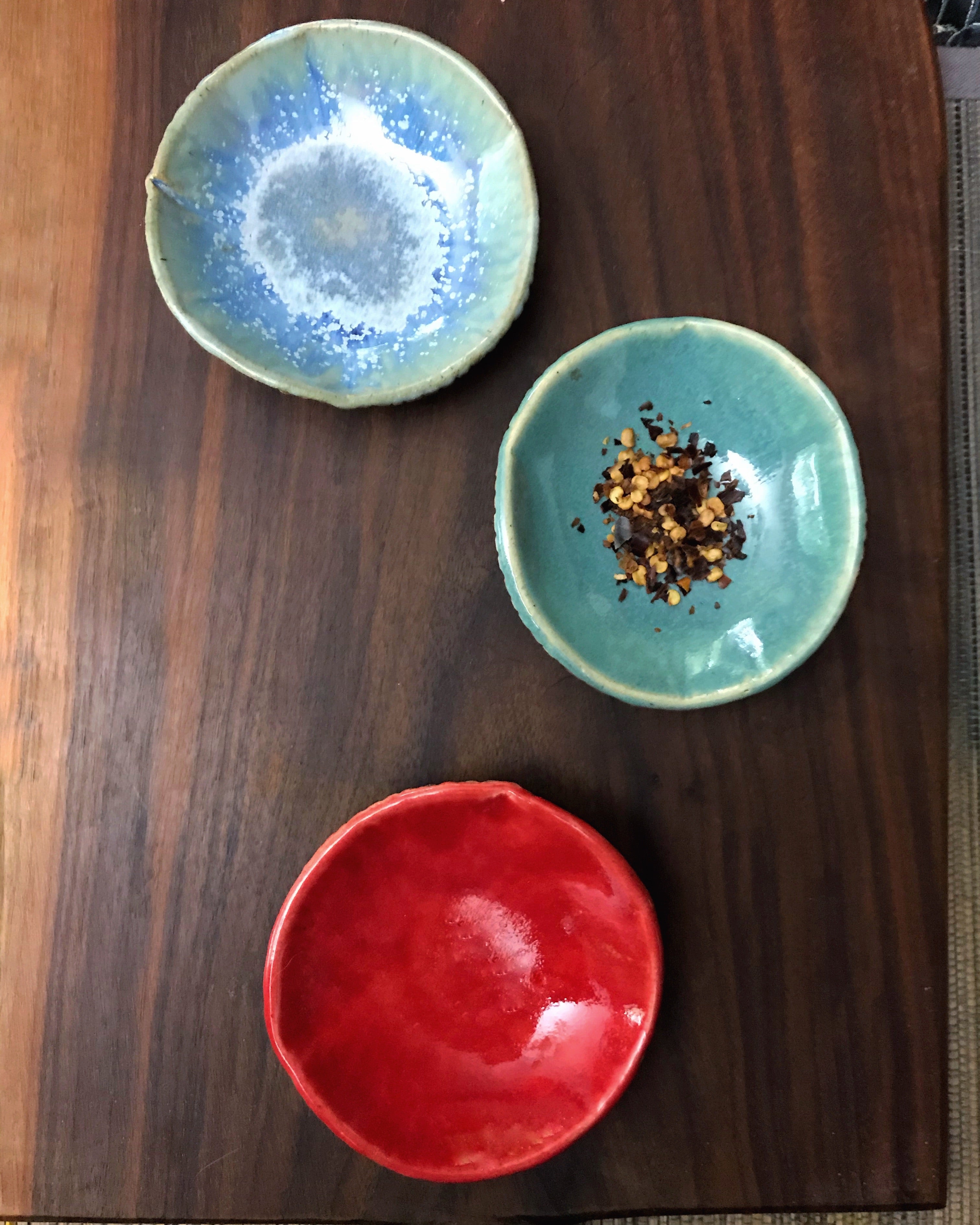 A set of 3 hand built bowls for food prep or dipping sauces.