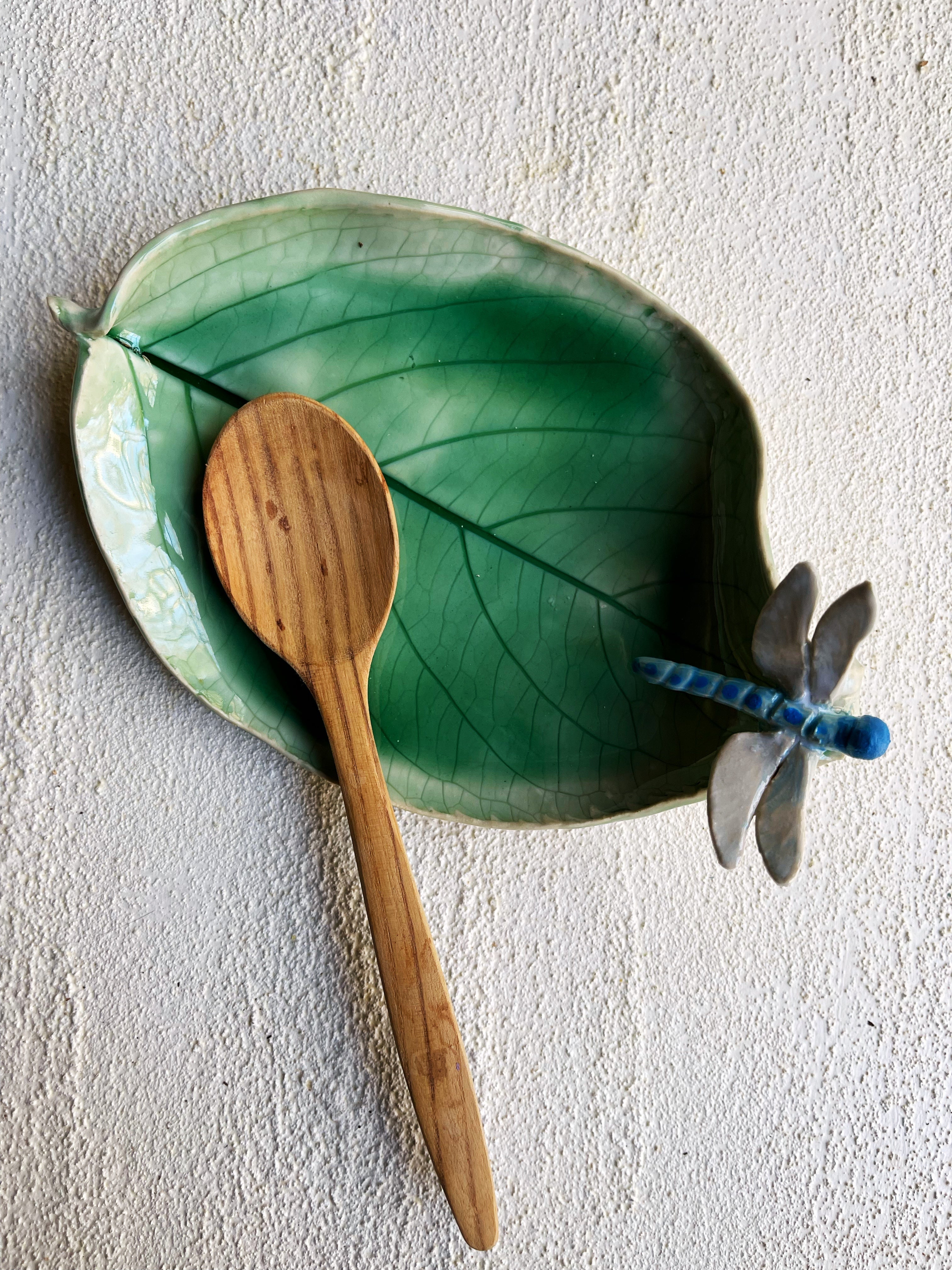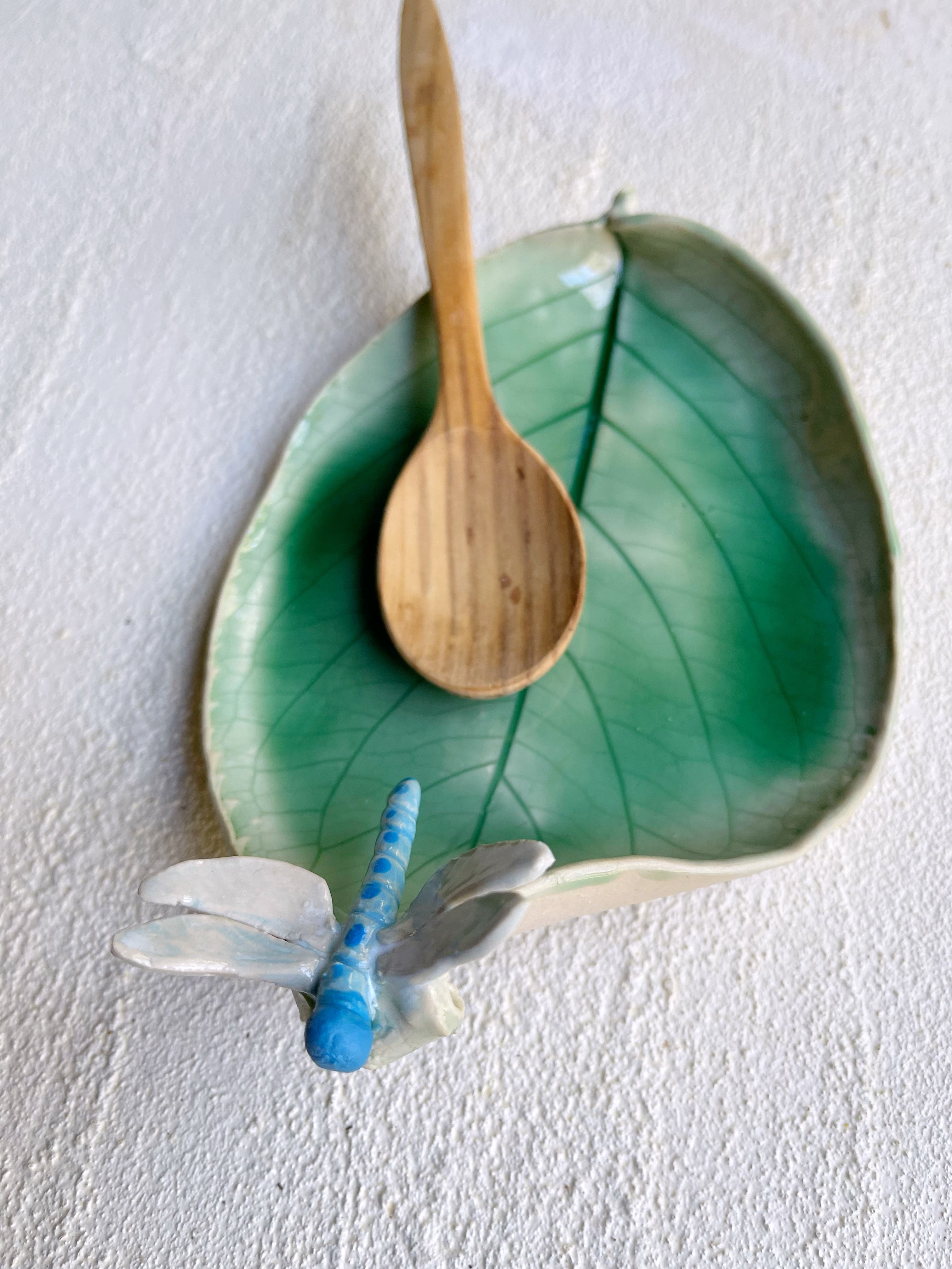 Leaf plate with curl and a dragonfly. Perfect for serving, candles, soap dish