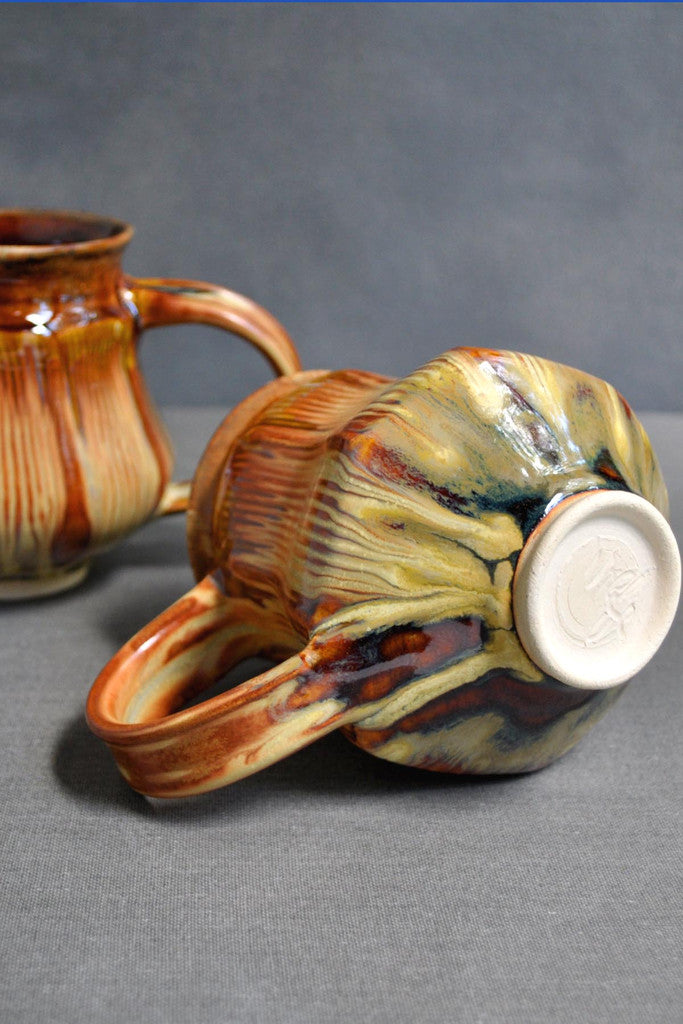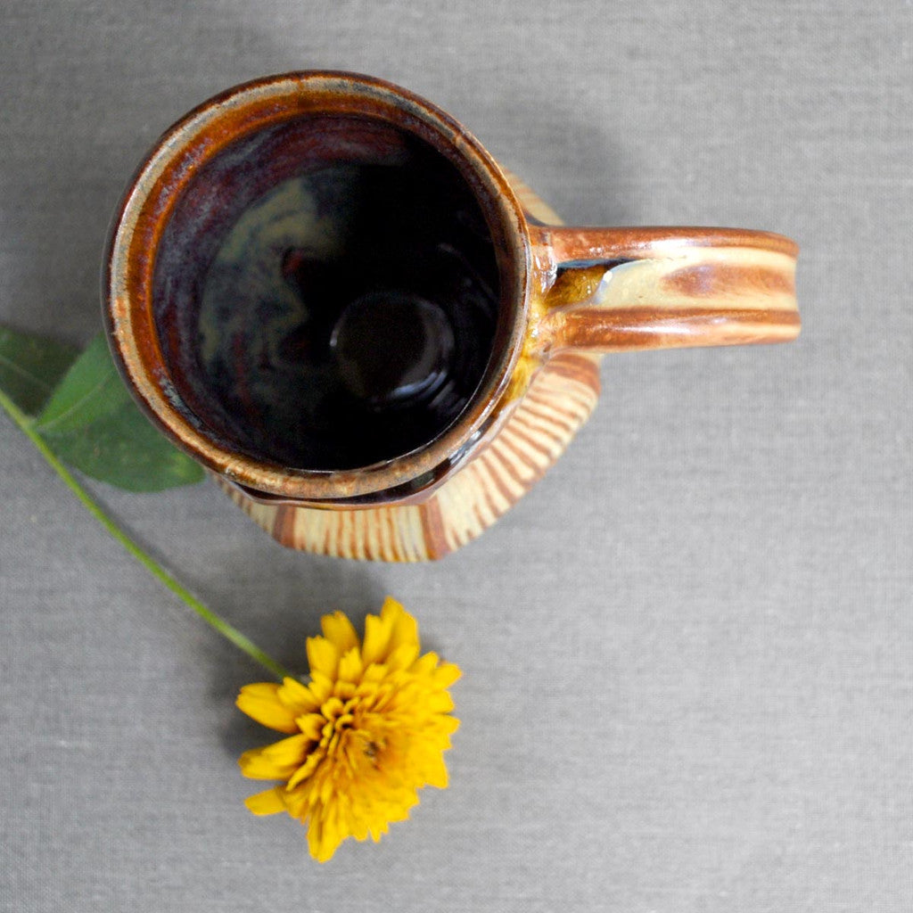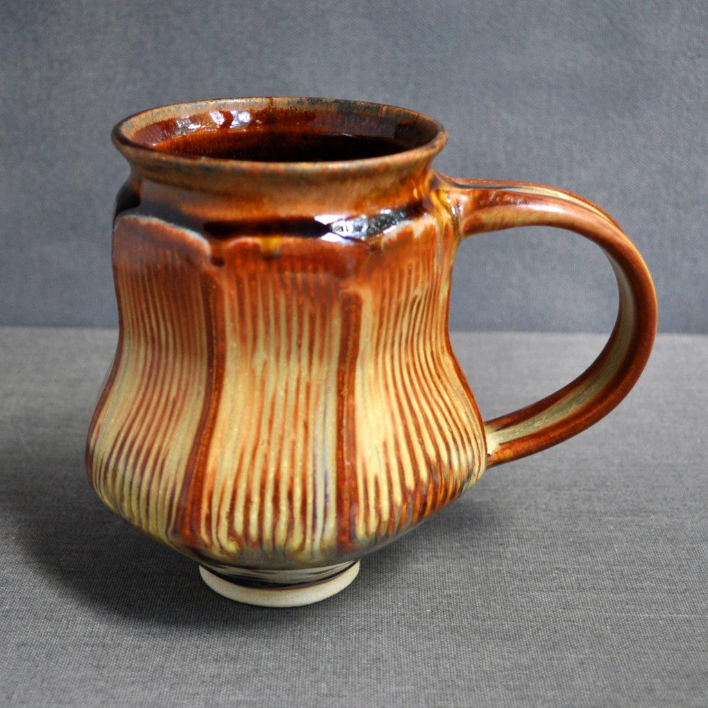 Sunday Coffee has rich deep brown tones with creamy caramel and rust. The flowing glaze shows the angles and combed texture of the facets so beautifully. This series has the ambiance of leisurely mornings with time to read and savor the moment.