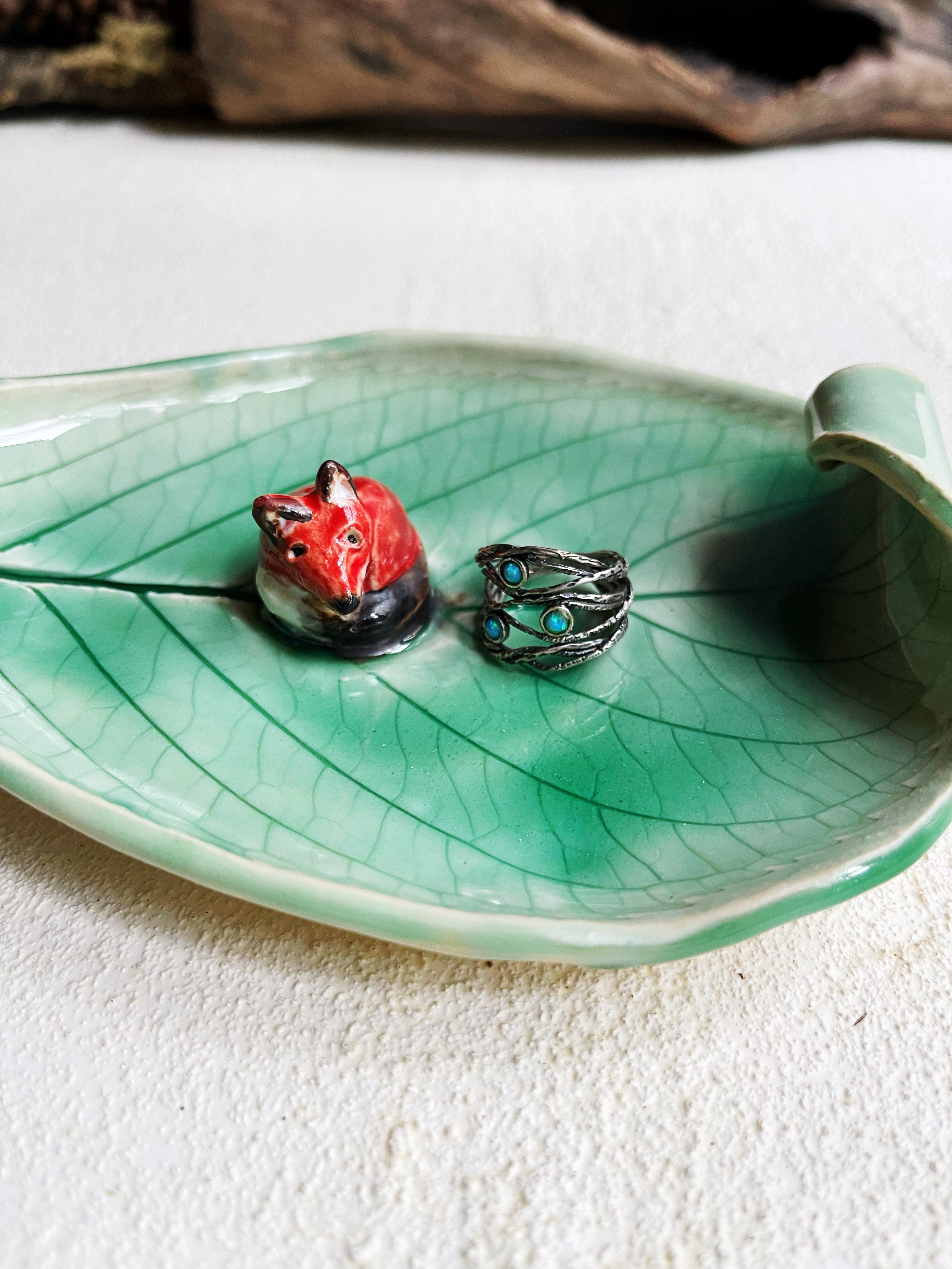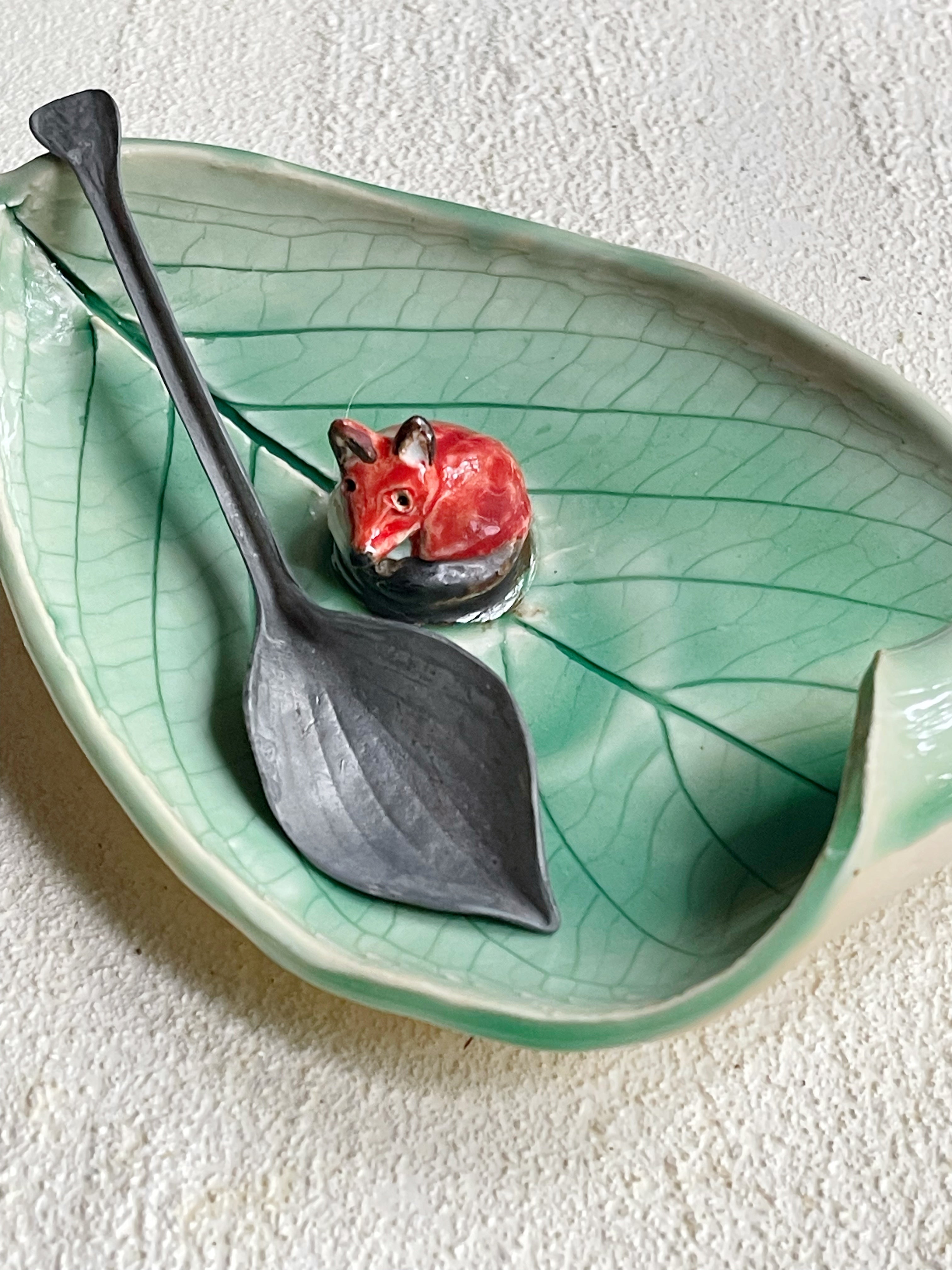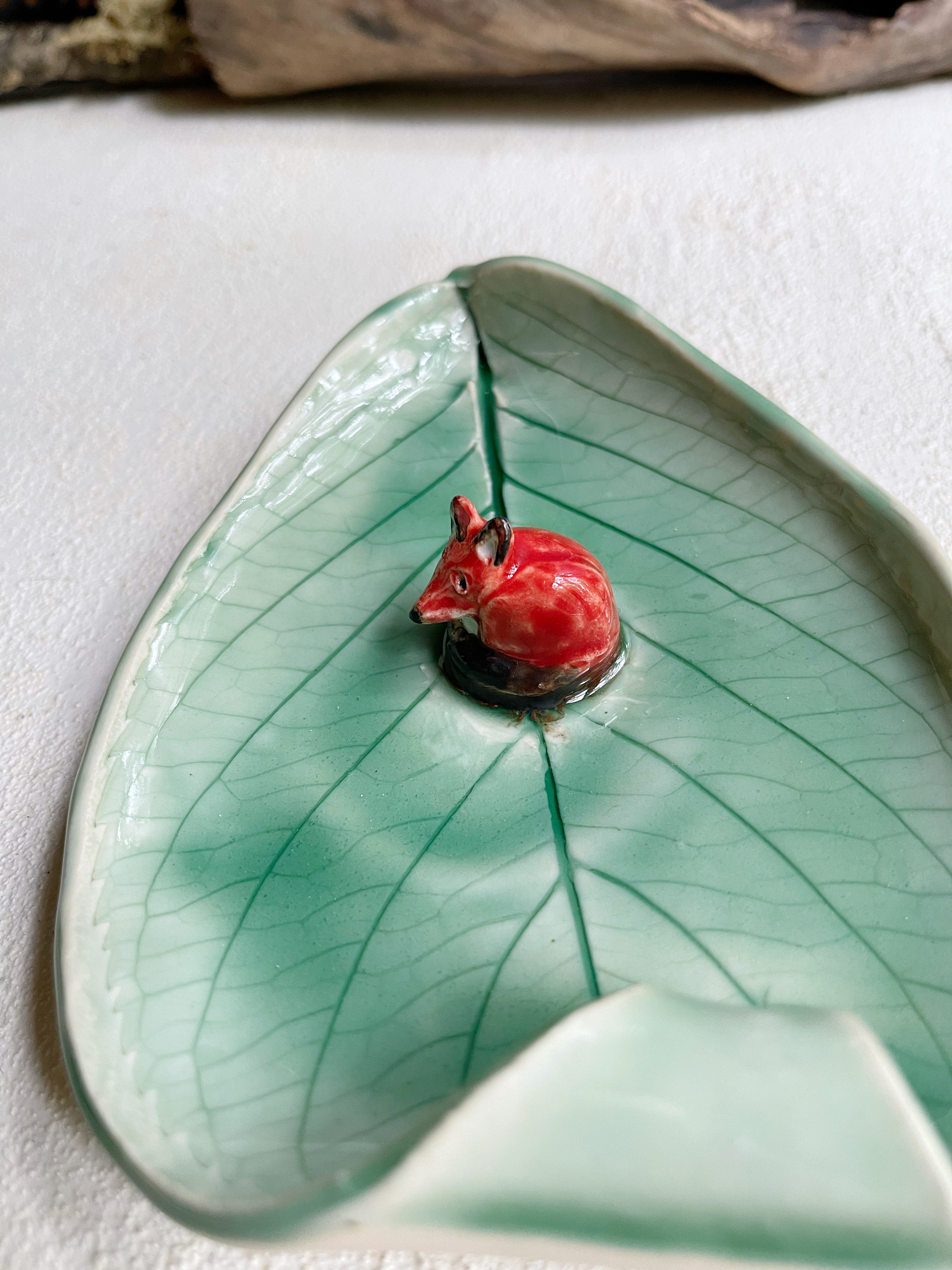 Leaf plate with curl and a fox. Perfect for serving, candles, soap dish