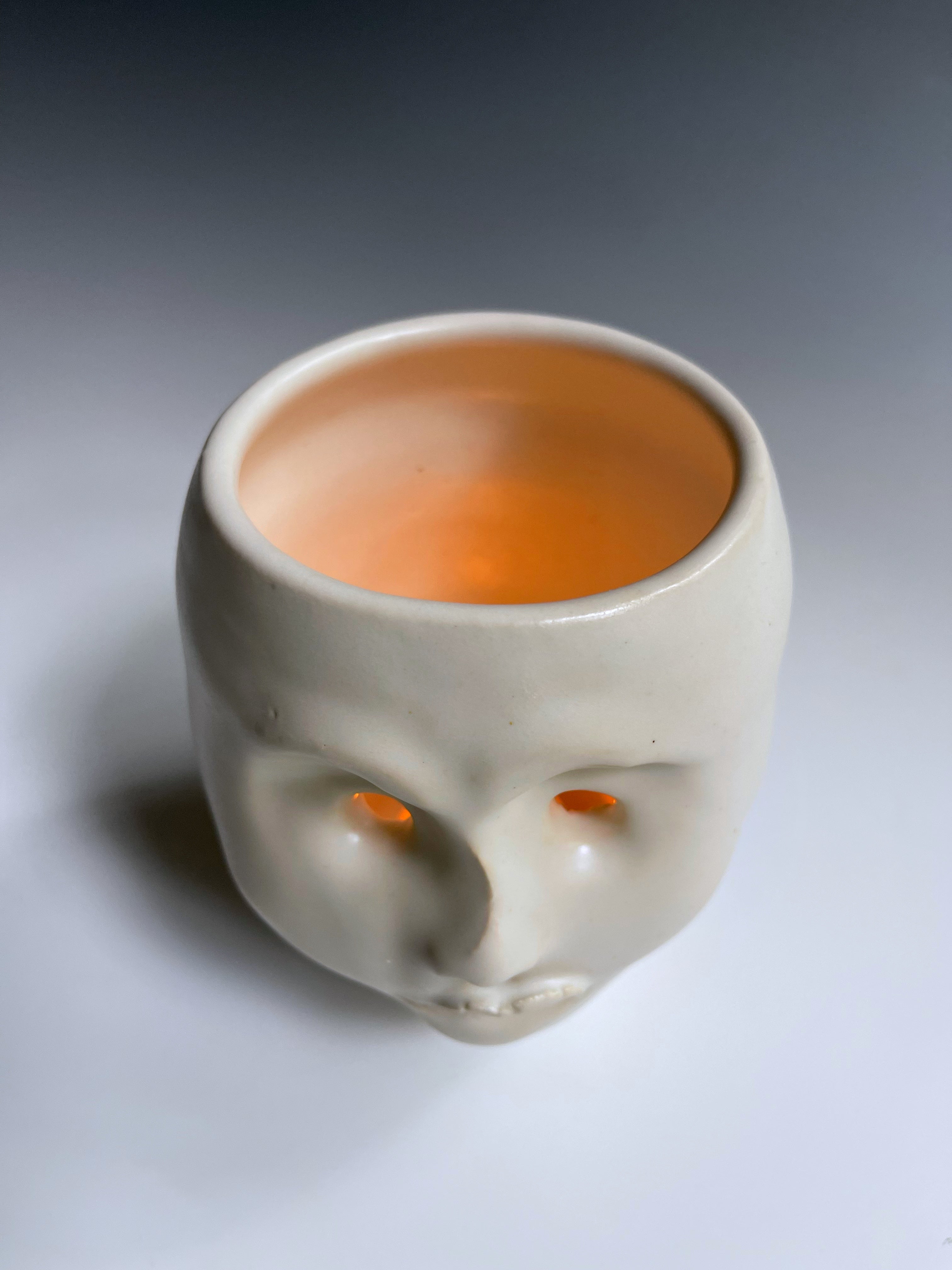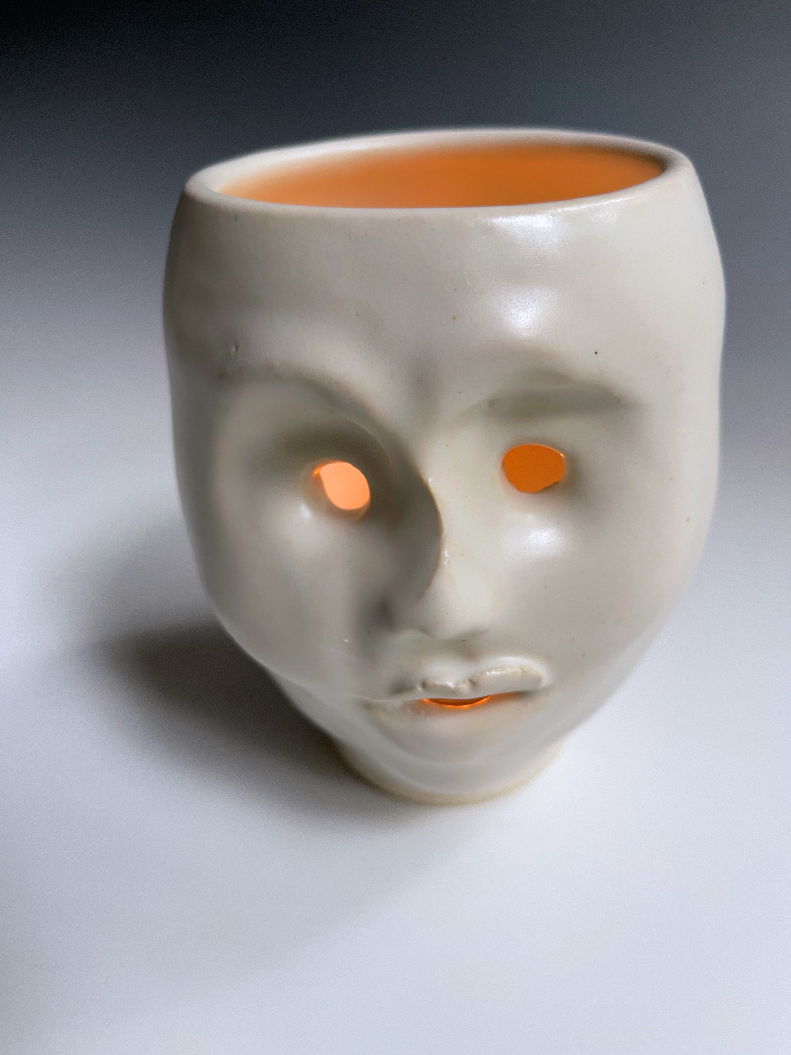 Each ghost is thrown and sculpted with its own unique scary and judgy face.