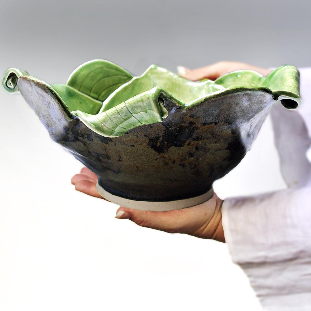 Hosta Leaf bowl 12 cup large sculptural serving vessel