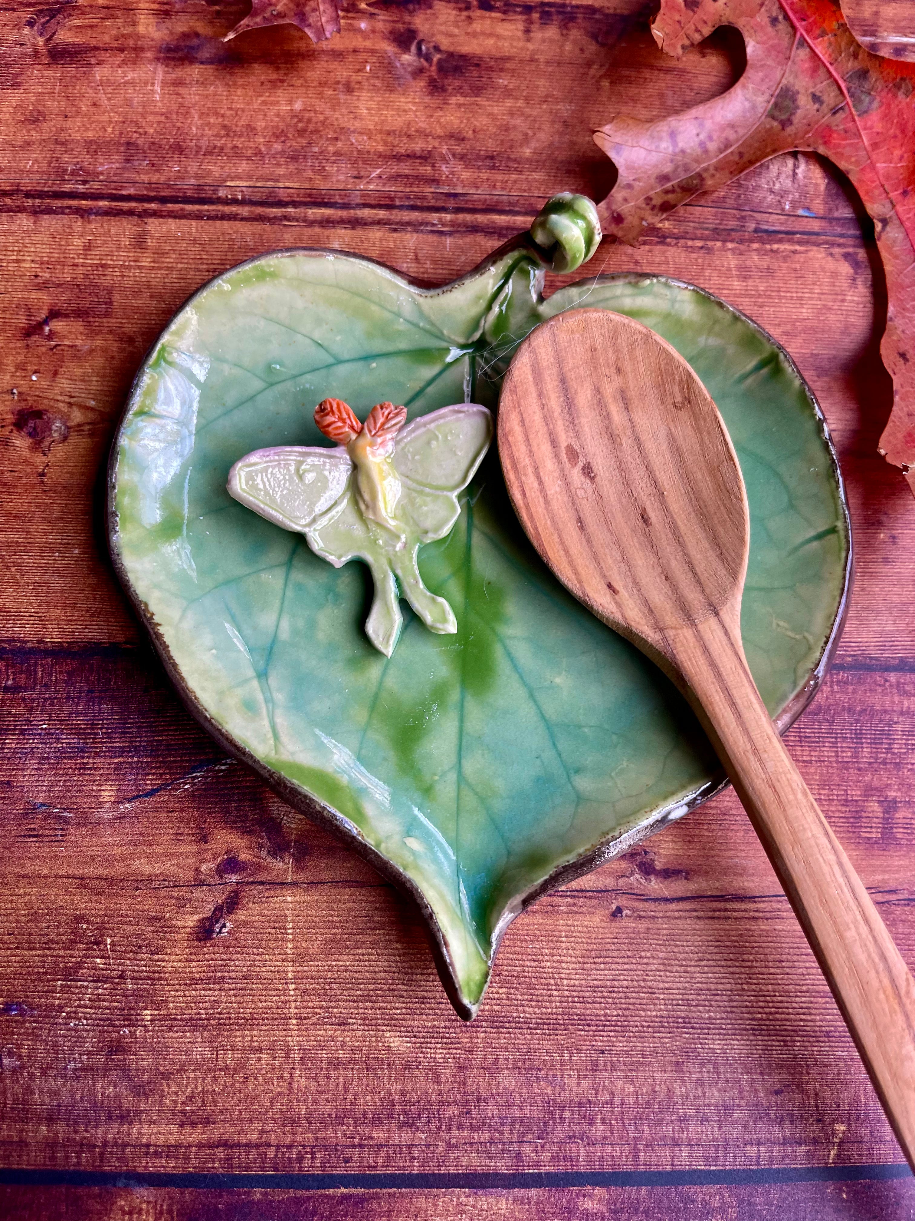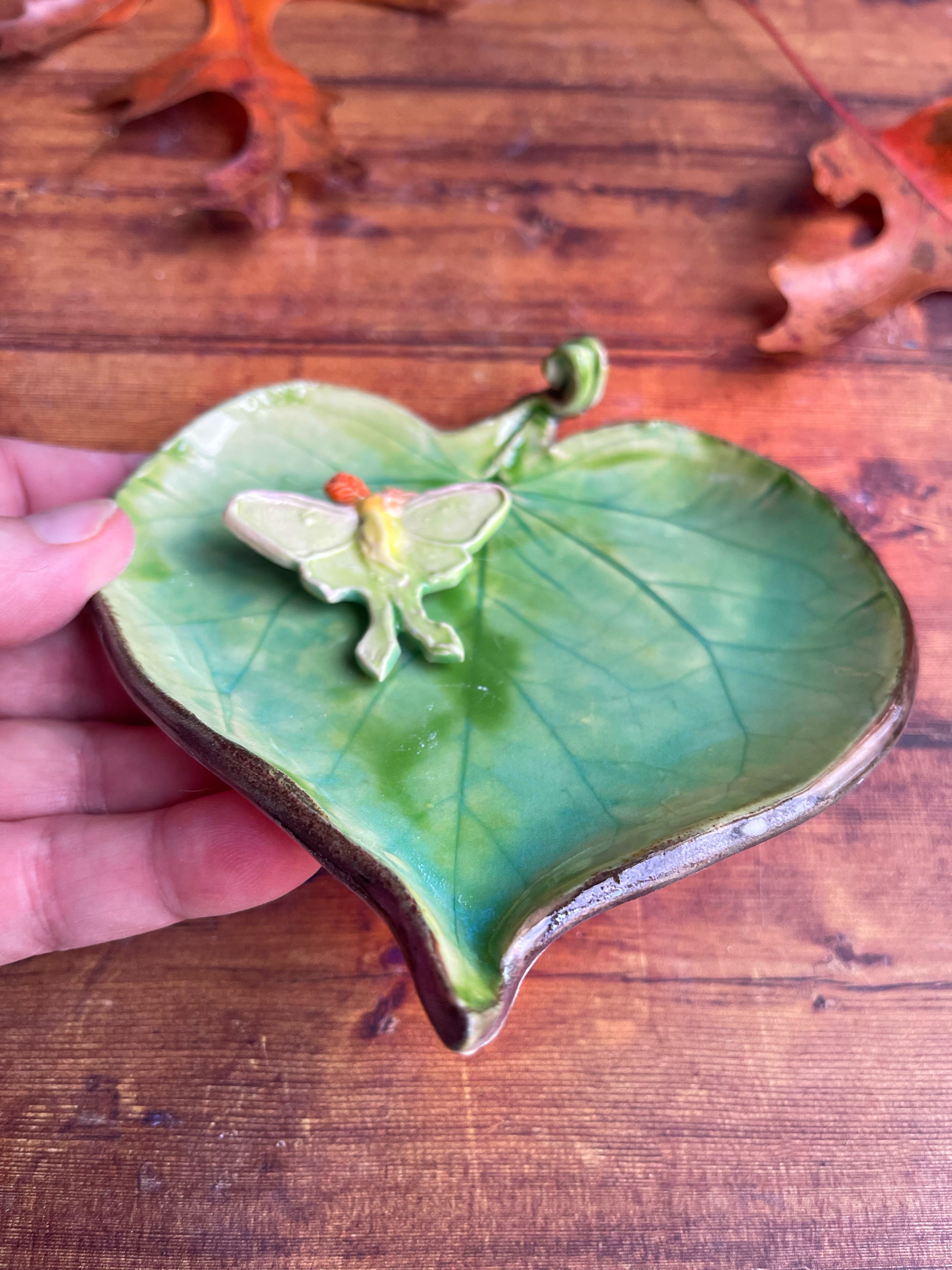 Leaf plate with a Luna moth. Perfect for serving, candles, trinkets, spoon rest