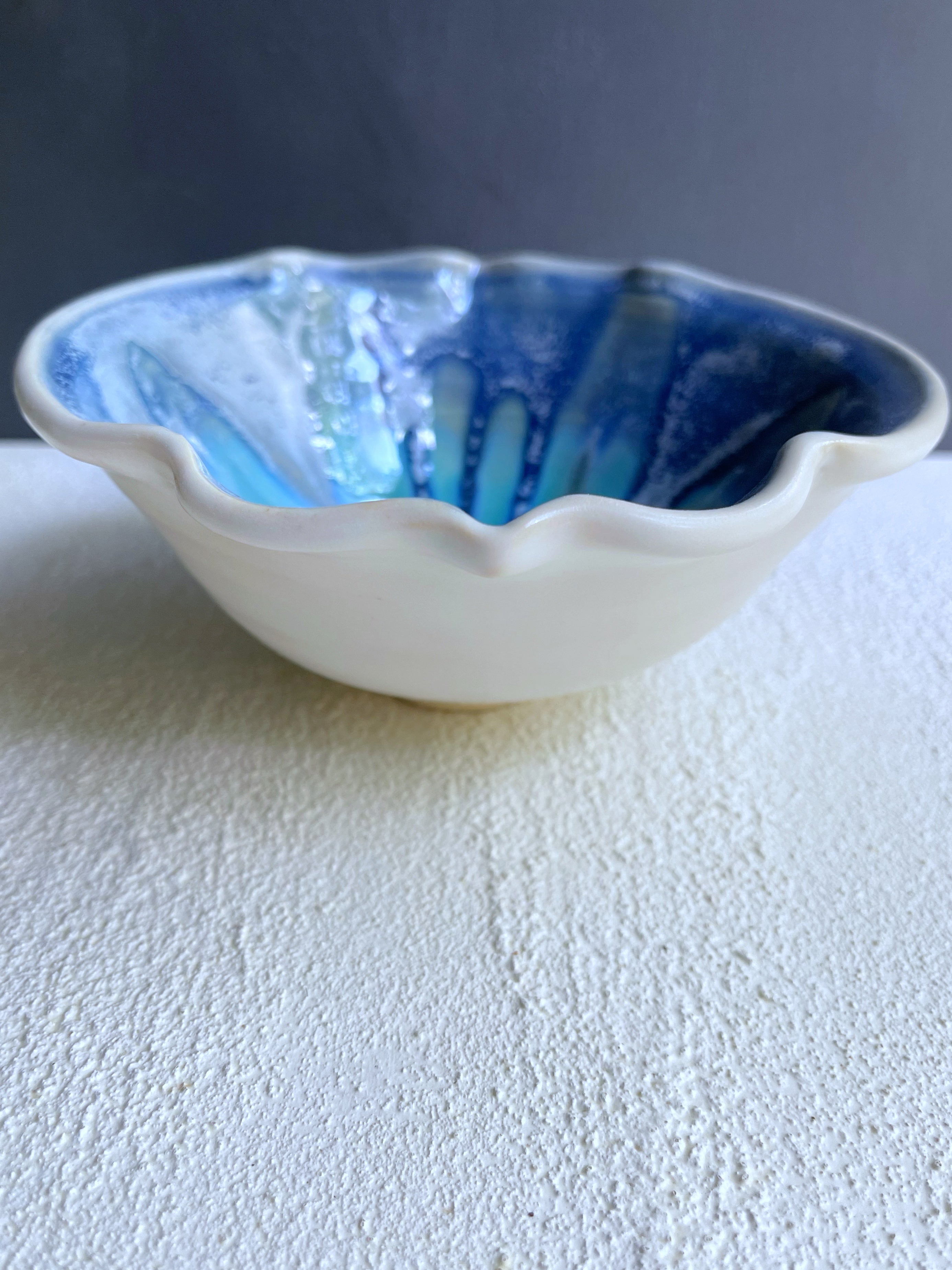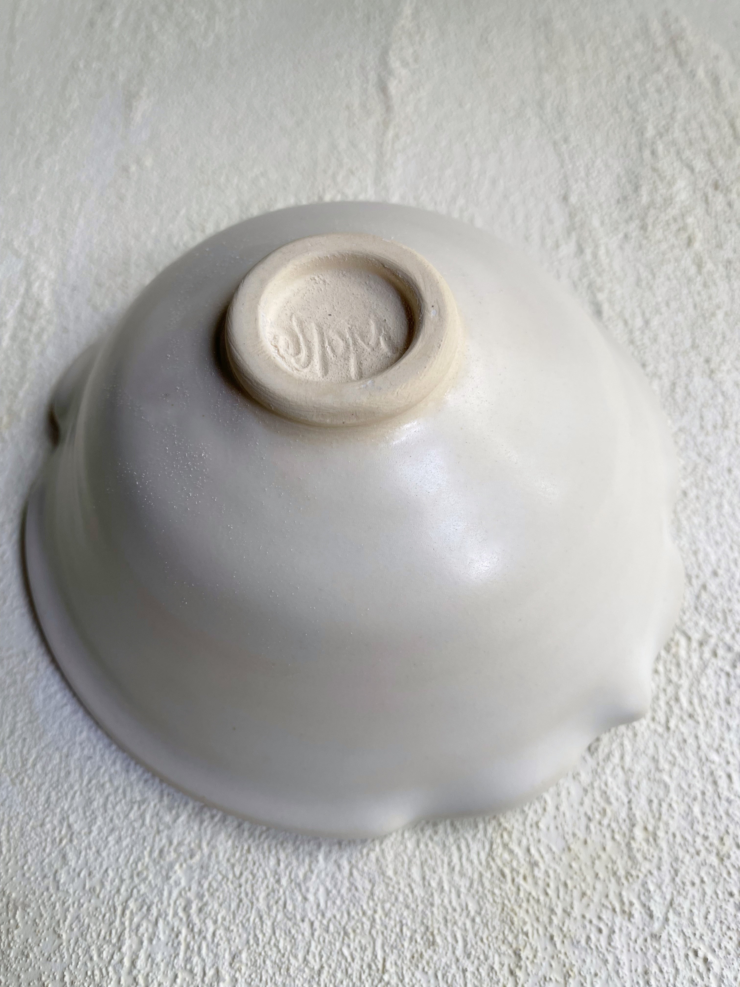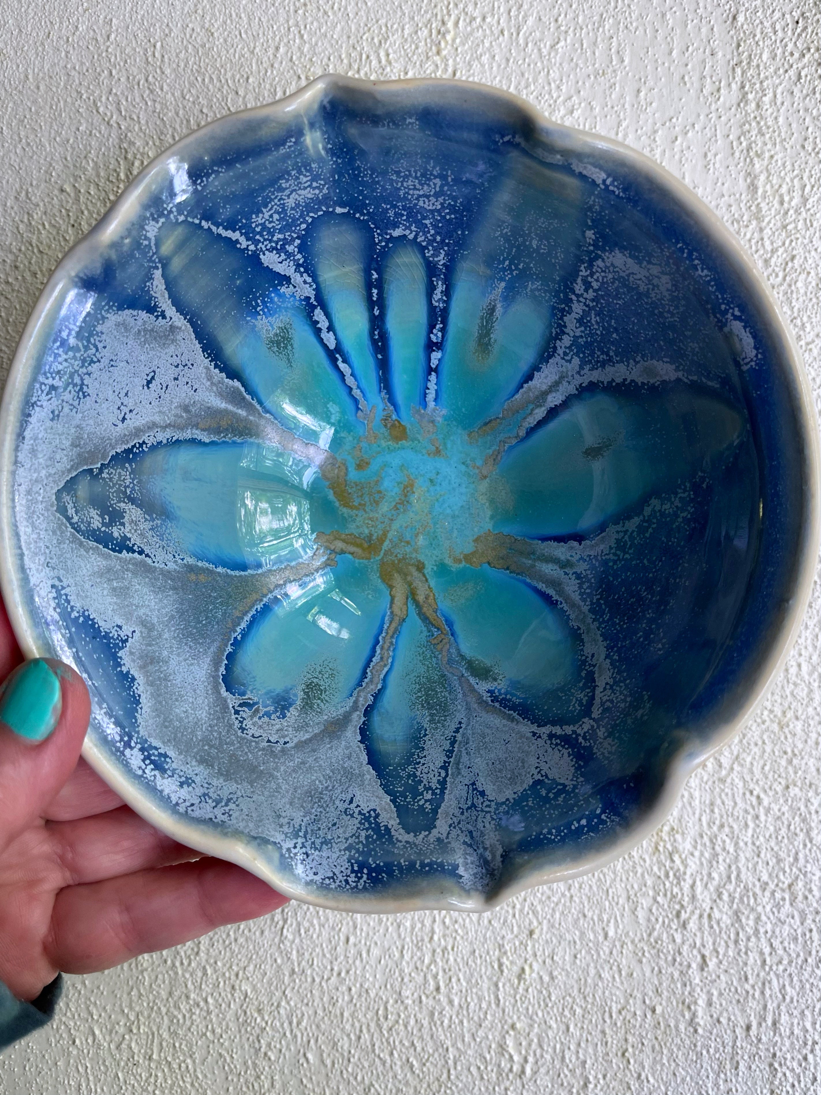 This large modern ceramic bowl was wheel thrown and altered into a quatrefoil (Arabesque) shape.