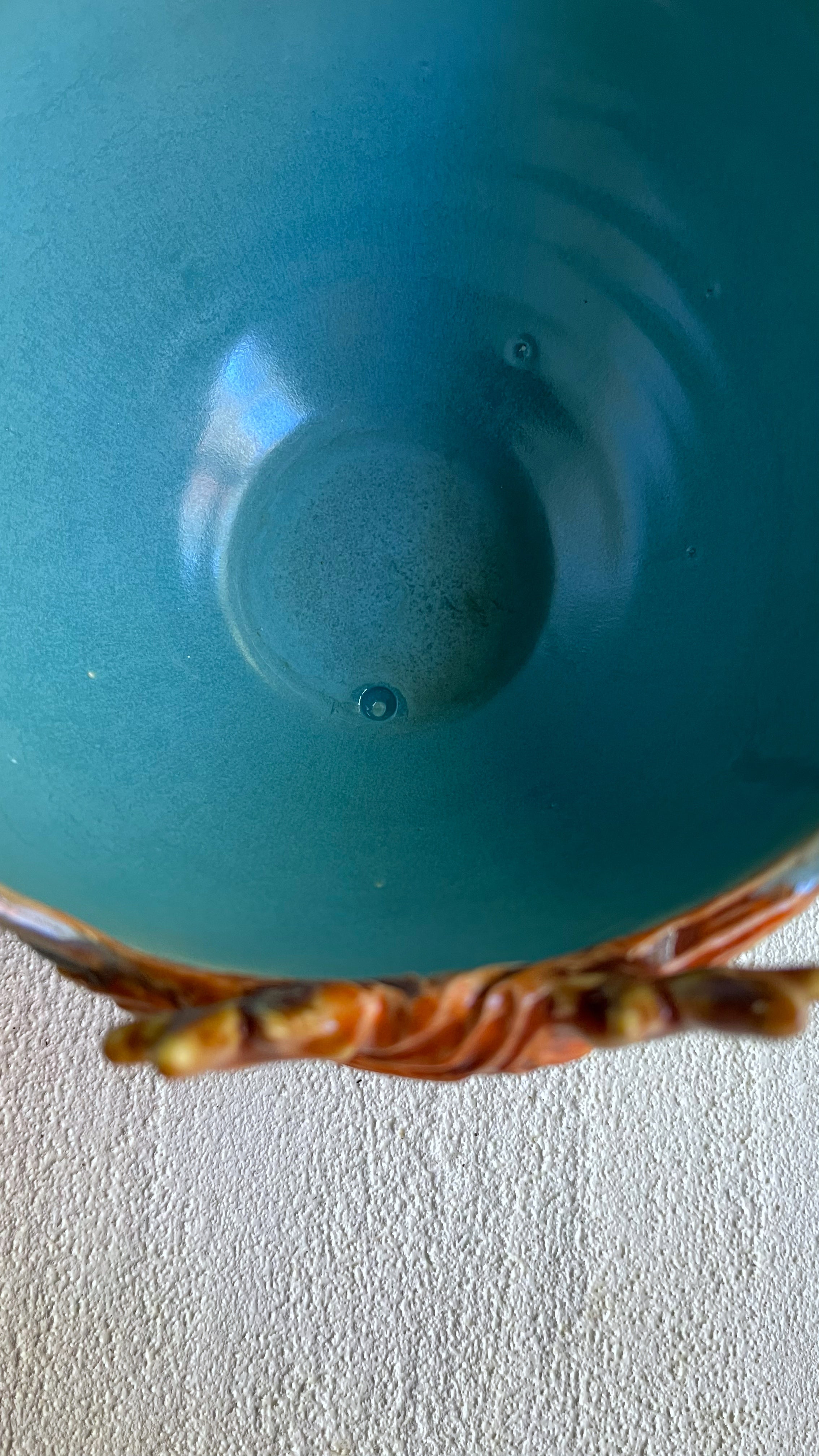 Prototype: this bowl has an experimental glaze that left a large crater in the inside bottom. The bowl is functional for anything non liquid, such as fruit, pine cones, or display. It is dishwasher safe.