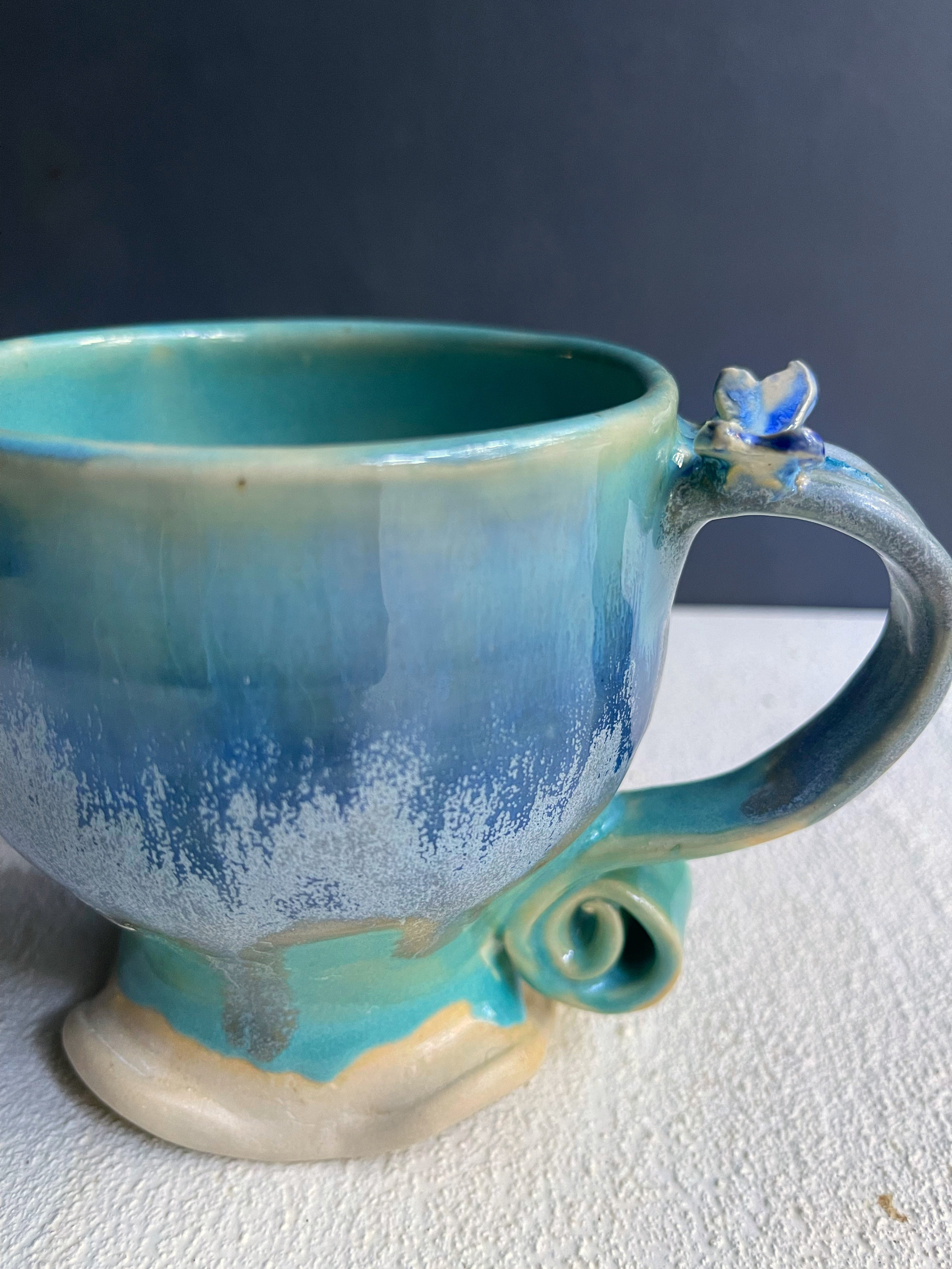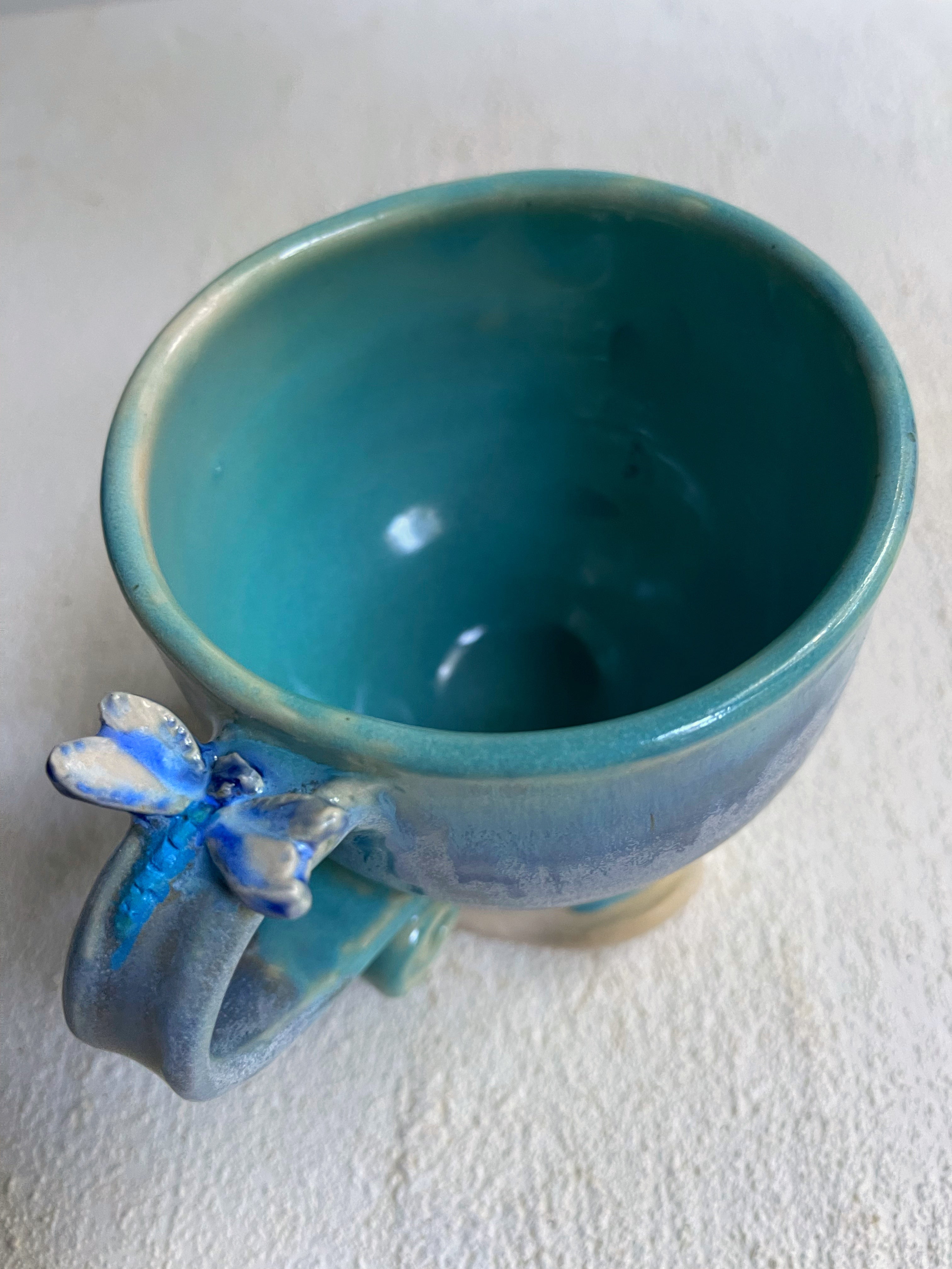 This mug has a dragonfly on the curly handle and also on the front side. The dragonfly as a spirit guide brings transformation and resilience through change. If you feel connected to dragonflies or to someone with an affinity to them this might be for you.