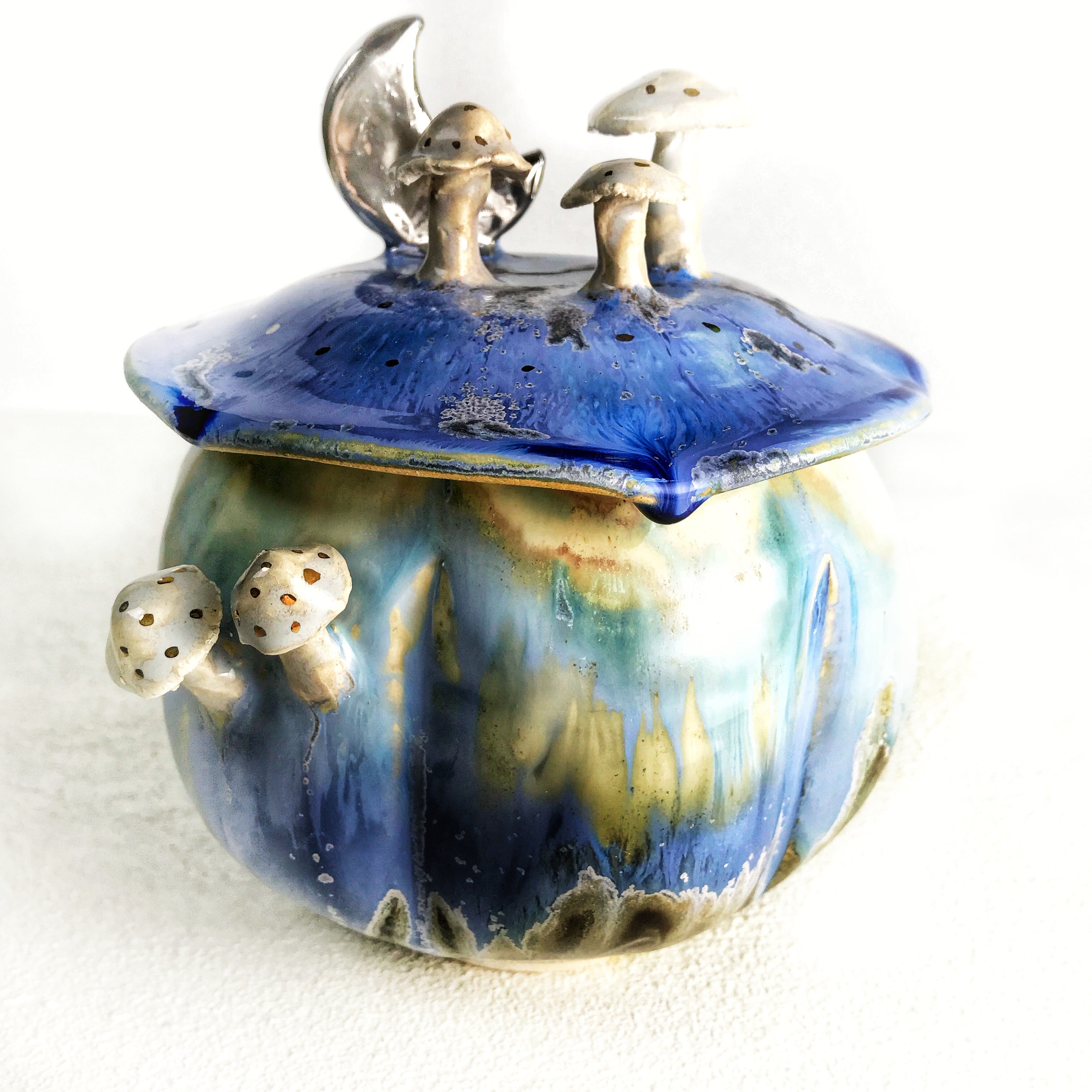This jar has the feminine power of the moon combined with mushrooms, which are symbolic of both good luck and magic. Mushrooms need the dark of night to grow. If you are a being who feels nurtured when bathed in moonlight, this jar is your totem!