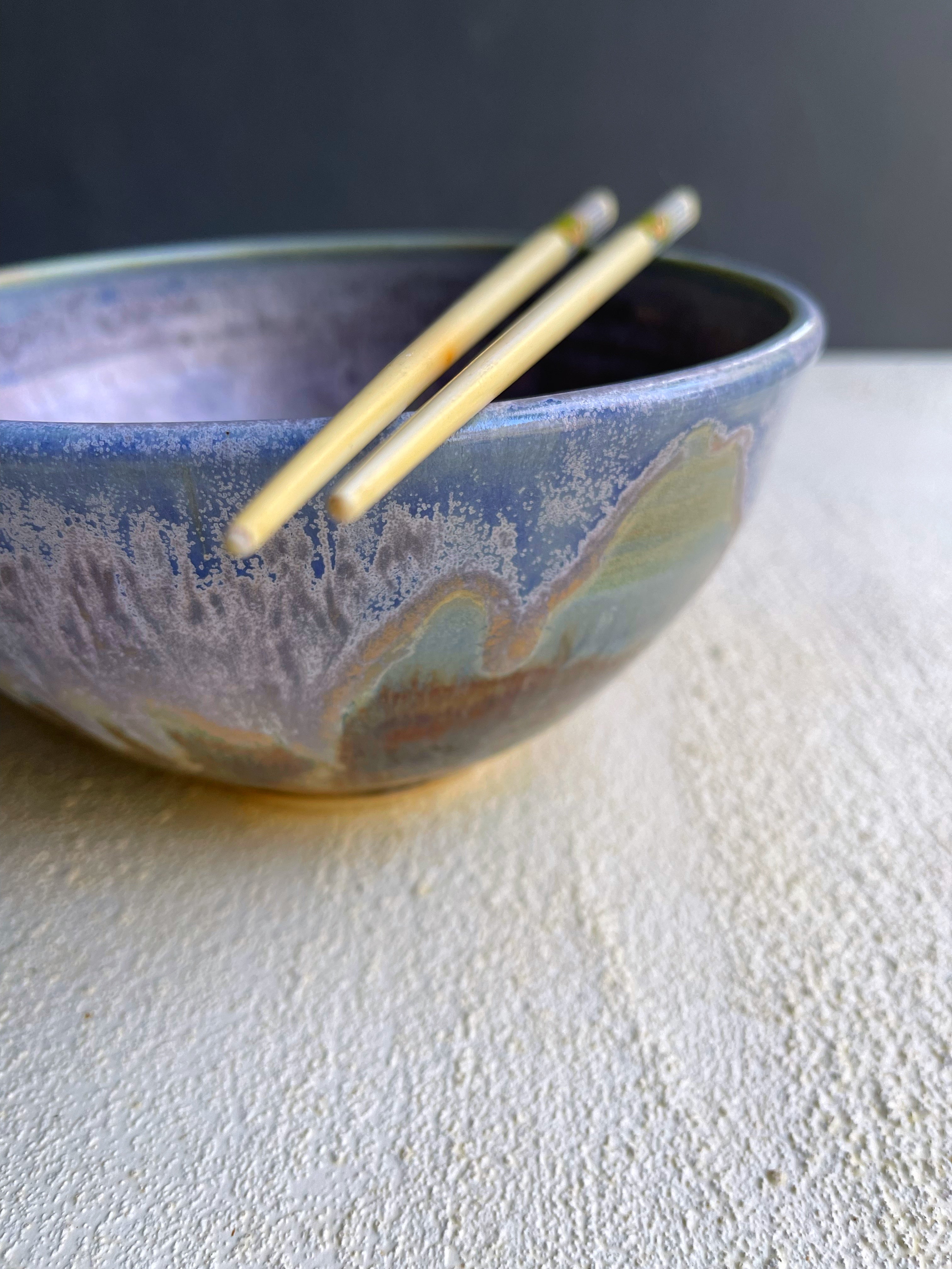 Wheel thrown bowl with spectacular glazes!