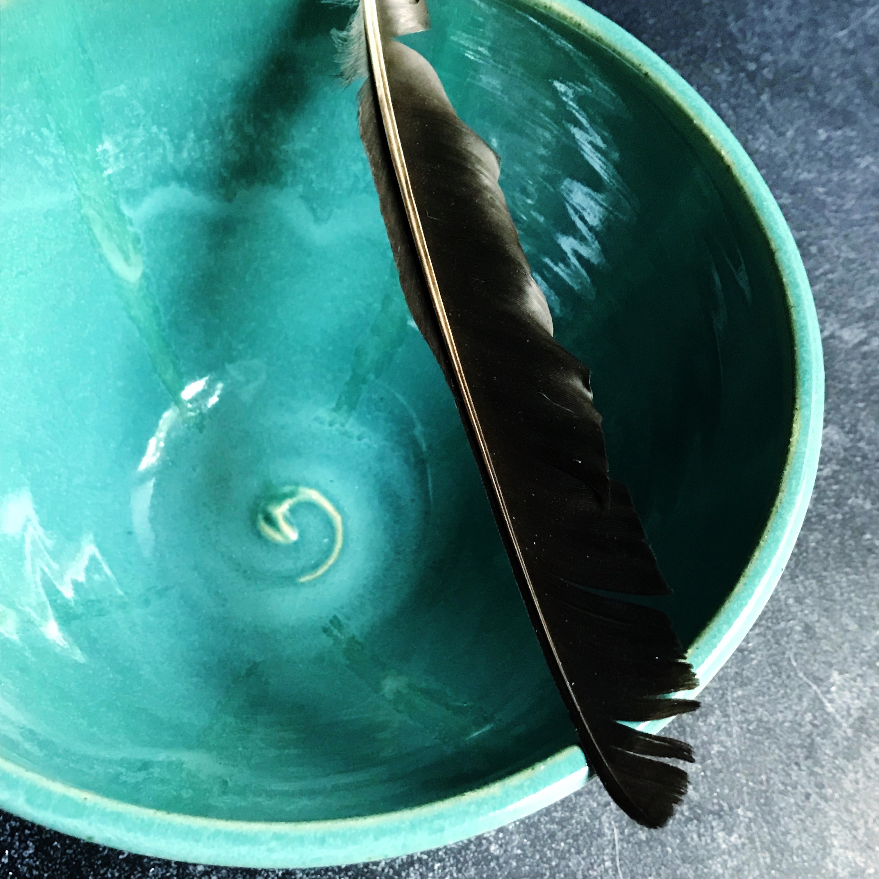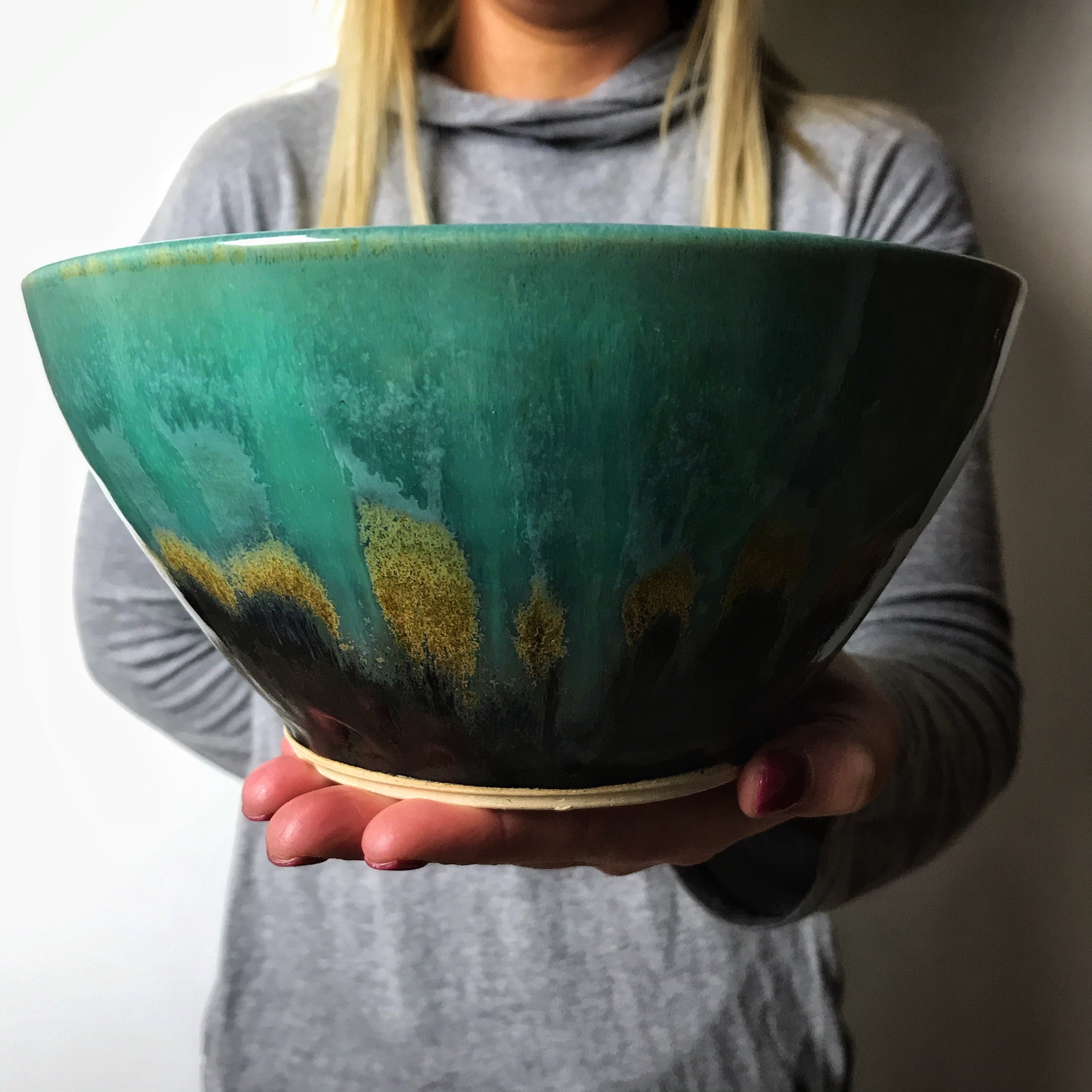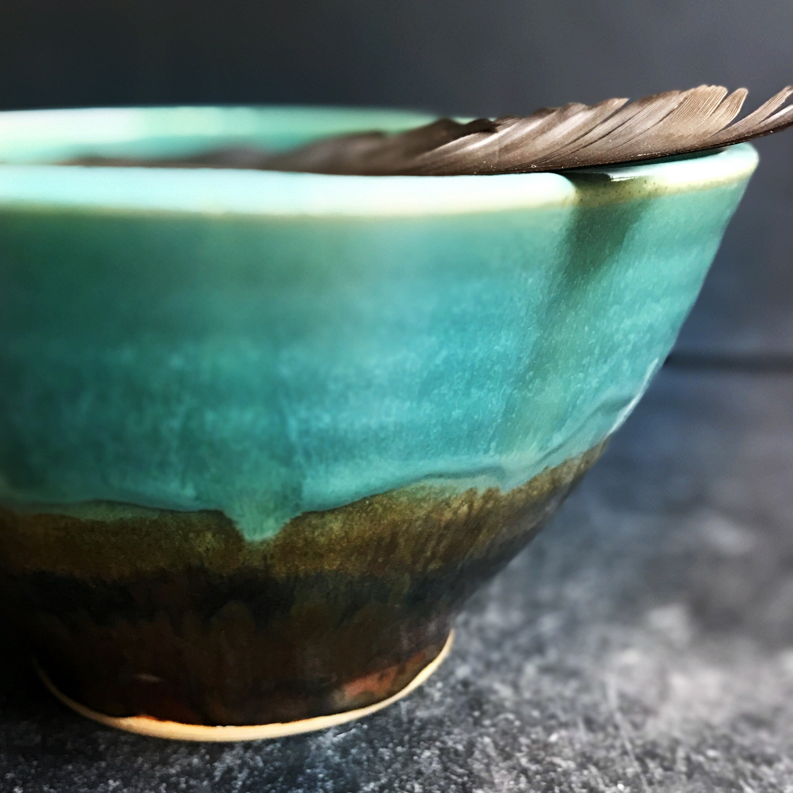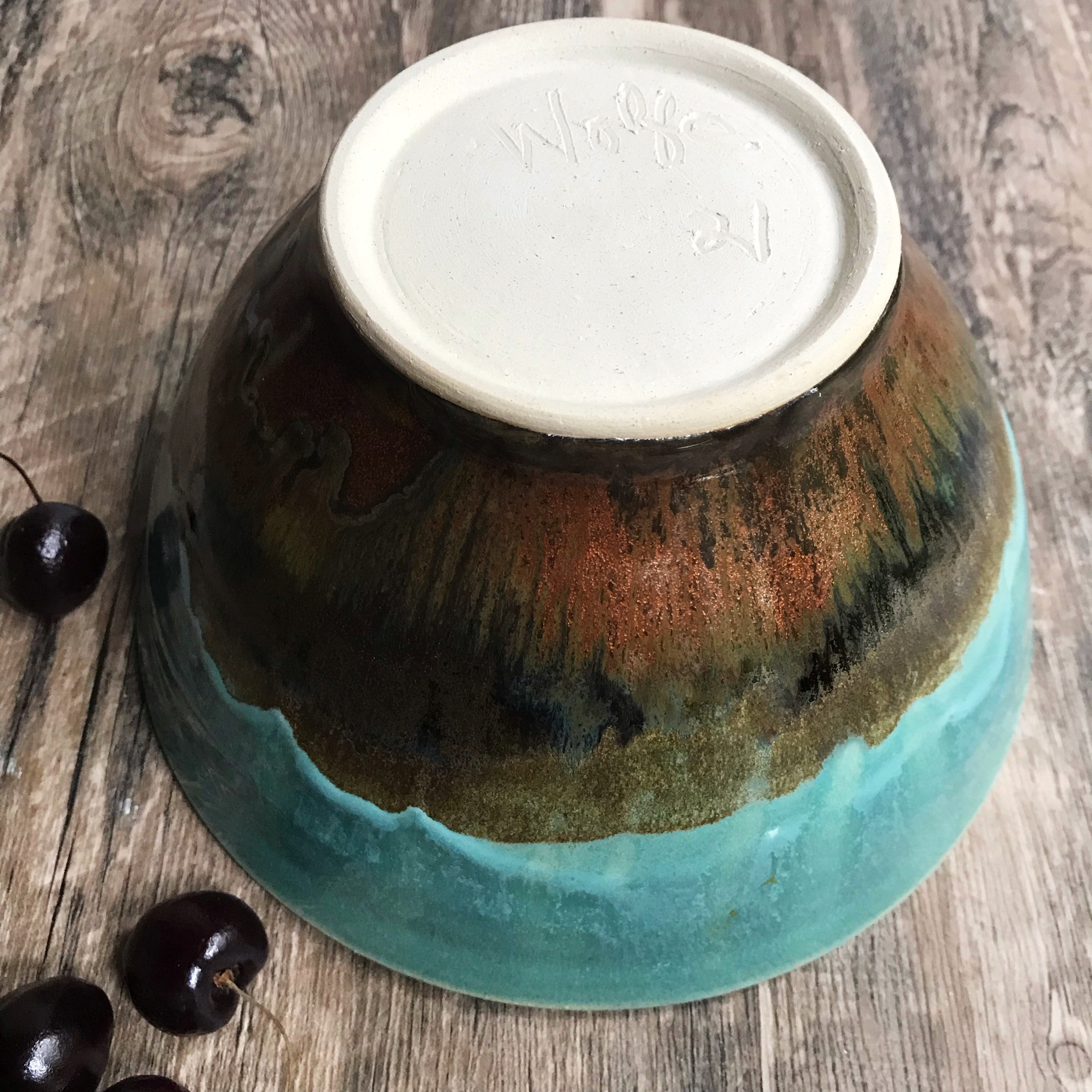 Glazed in 3 layers of glaze that produced beautiful color blends