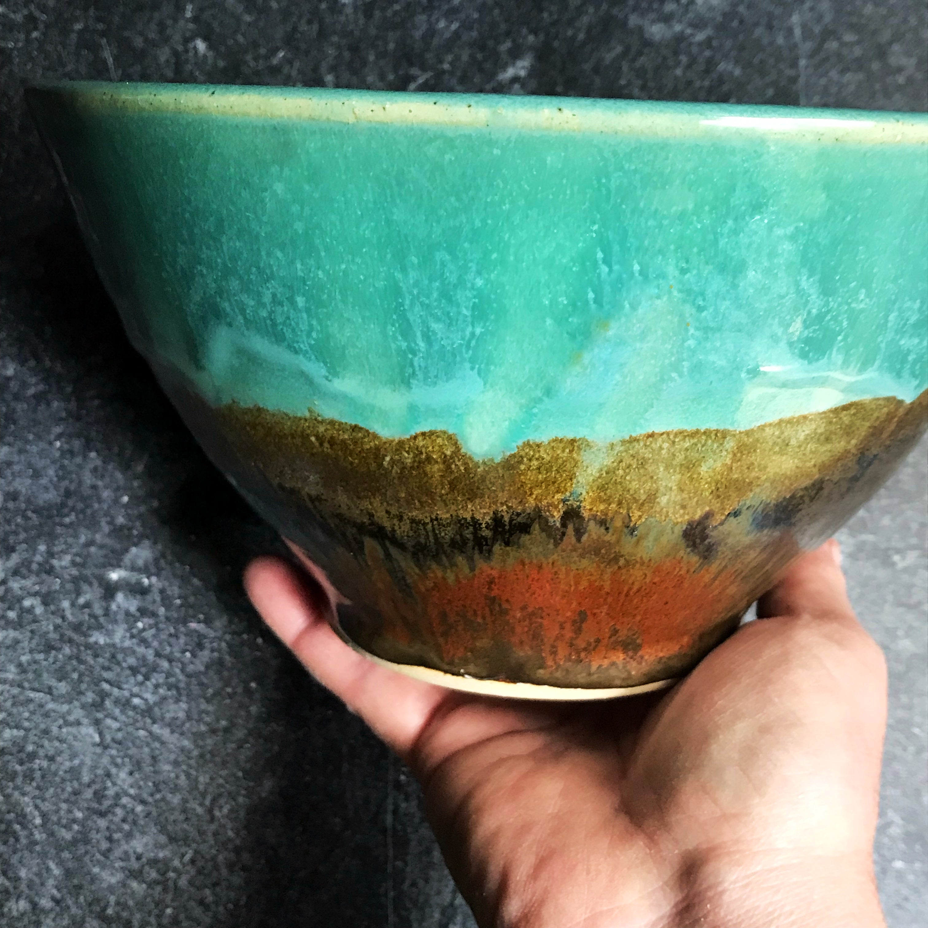 Noodle serving bowl Turquoise and Red Earth 7 cup