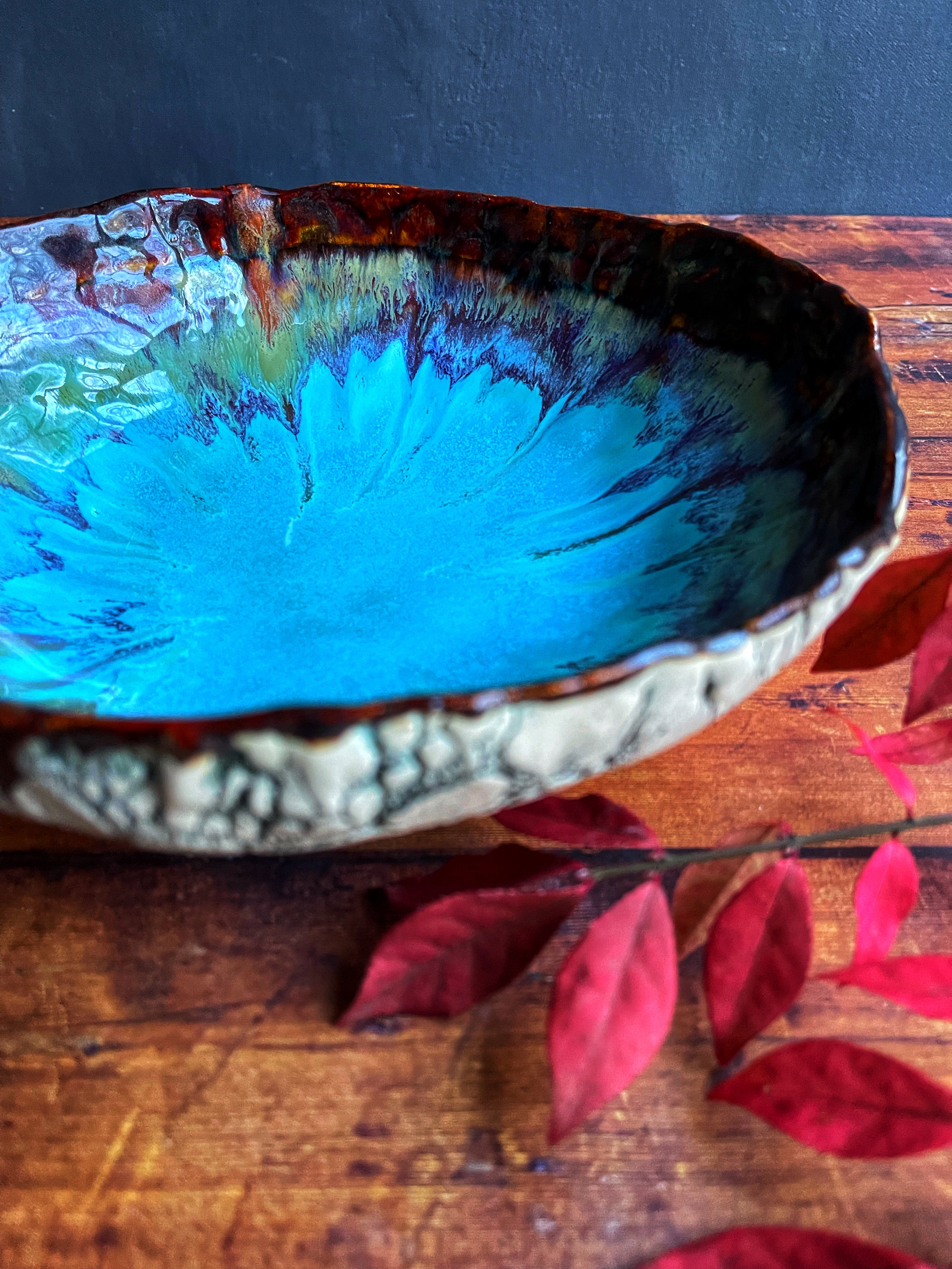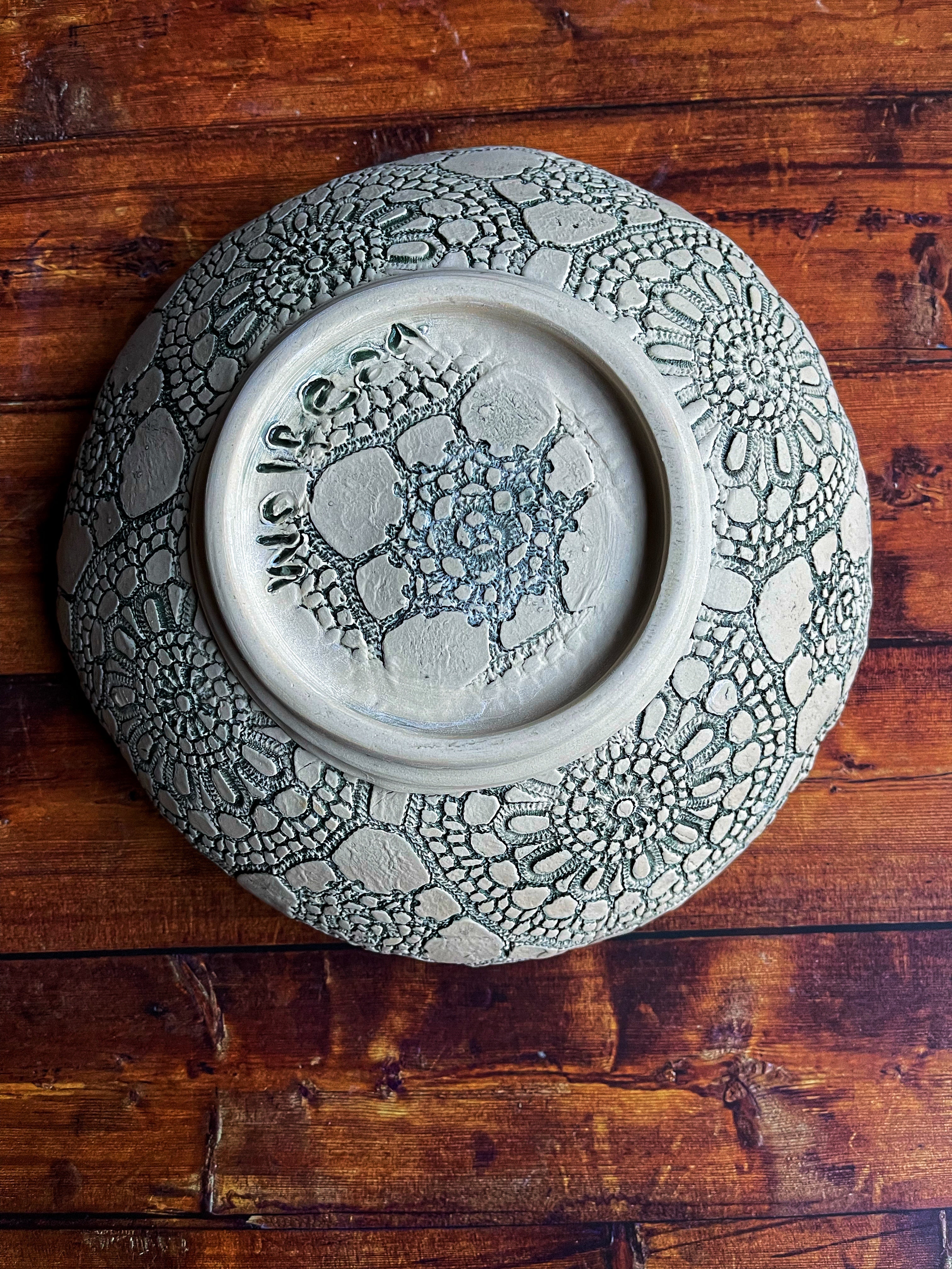 My rustic ceramic bowl collection marries sculpture with functional serving, and gives your table something as organic and nourishing as the food you serve. The outer texture is made by pressing my Nana's old crochet lace tablecloth into the wet clay.