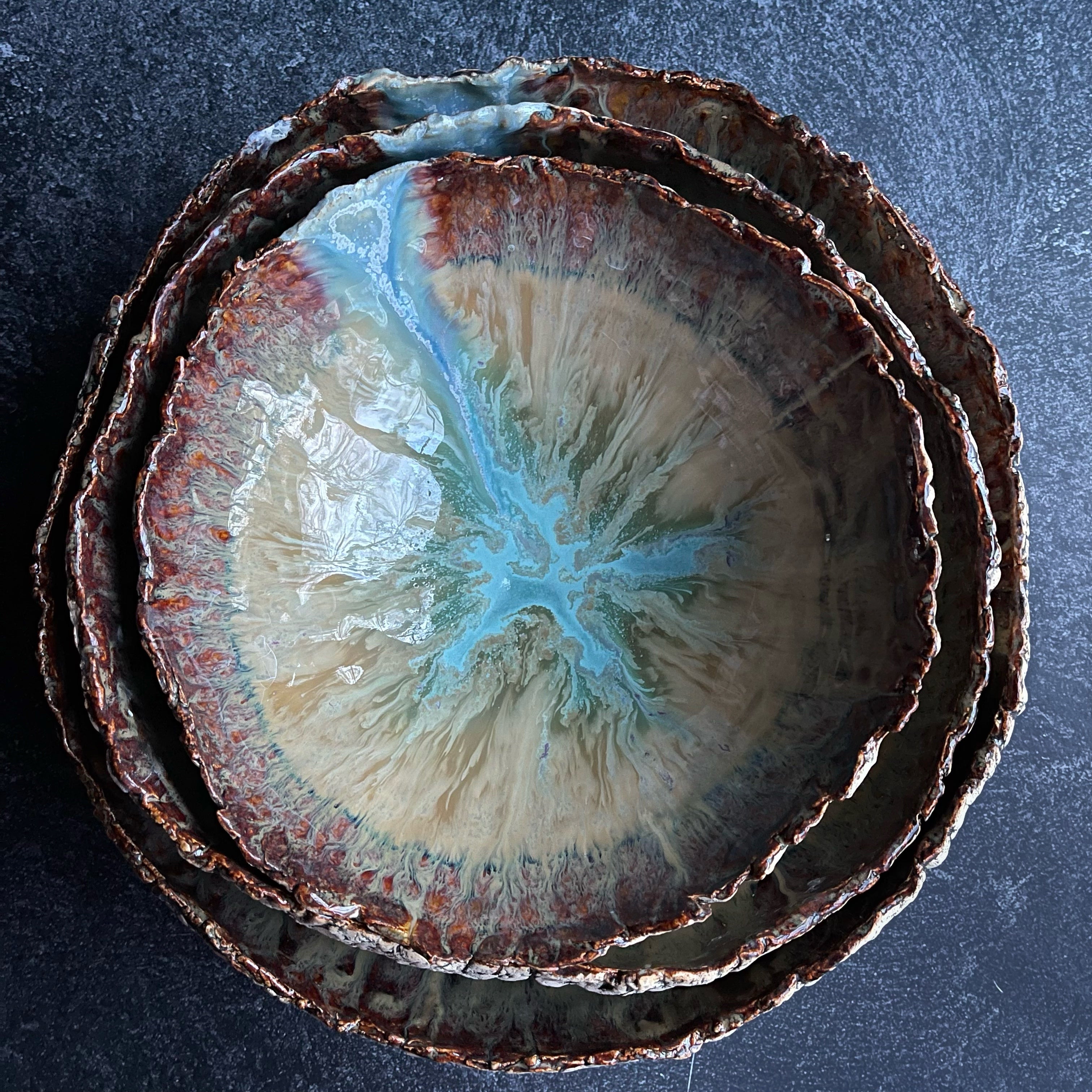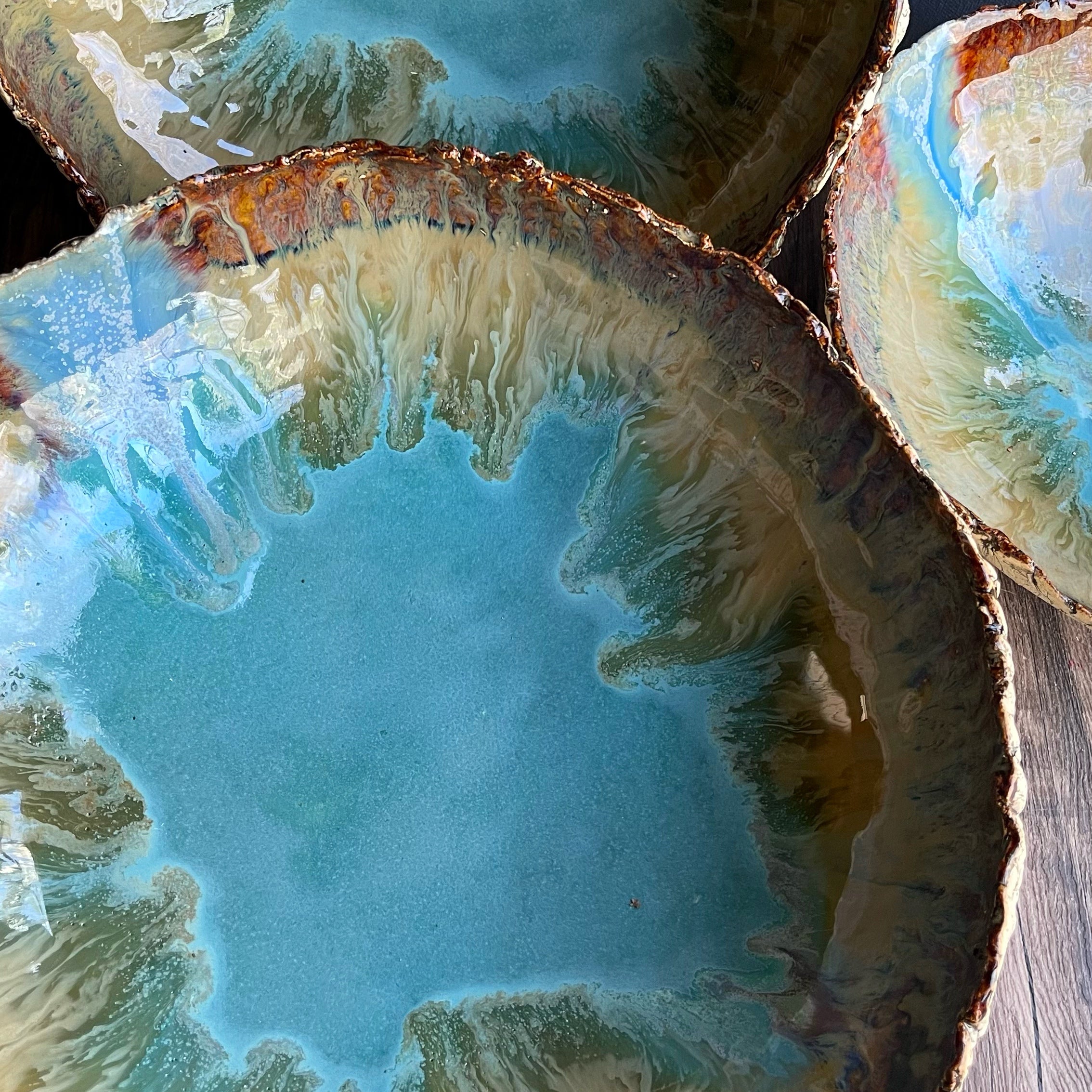 Organic Rustic nesting bowl set bowl in Turquoise Waters 3 pieces