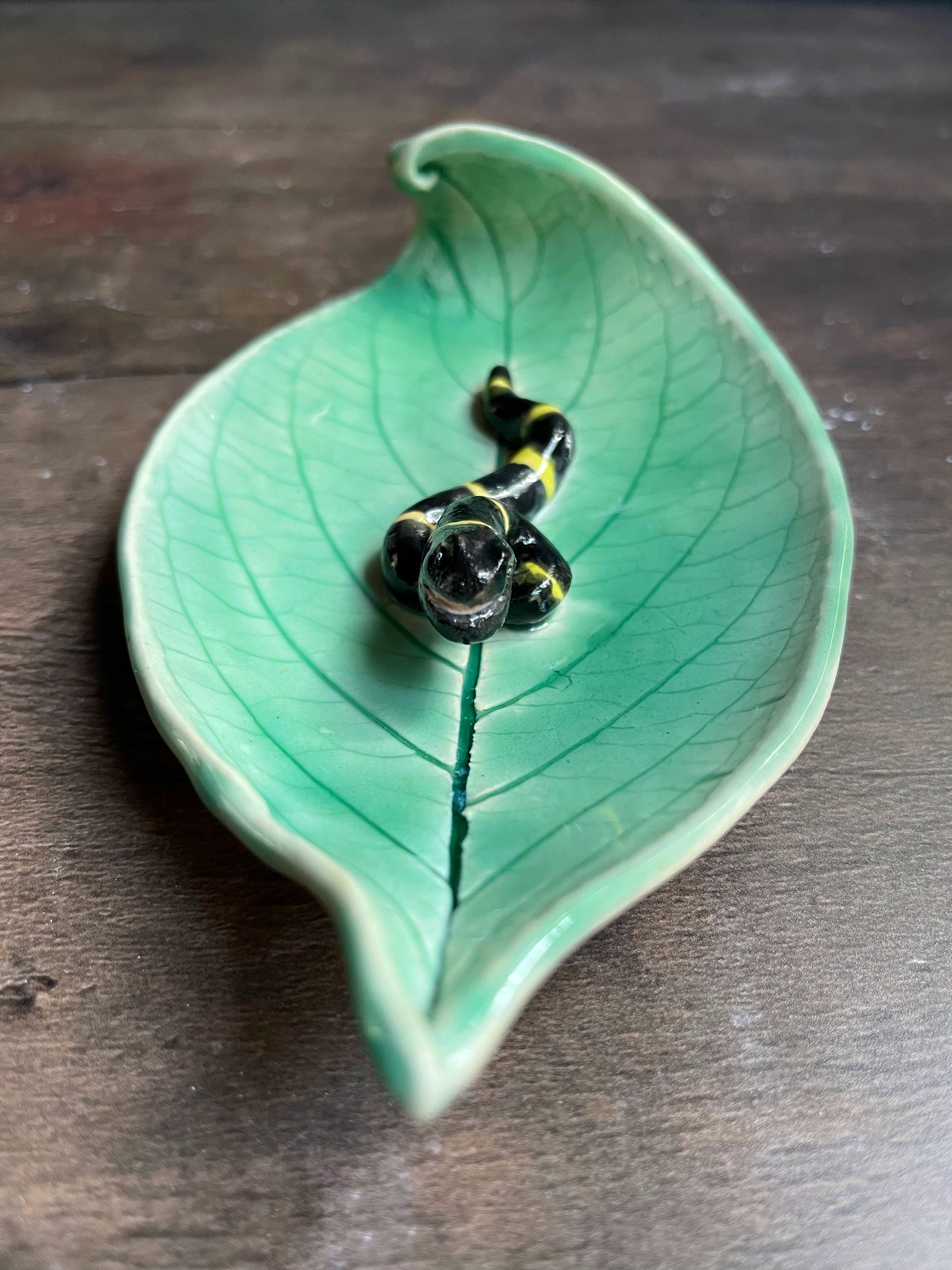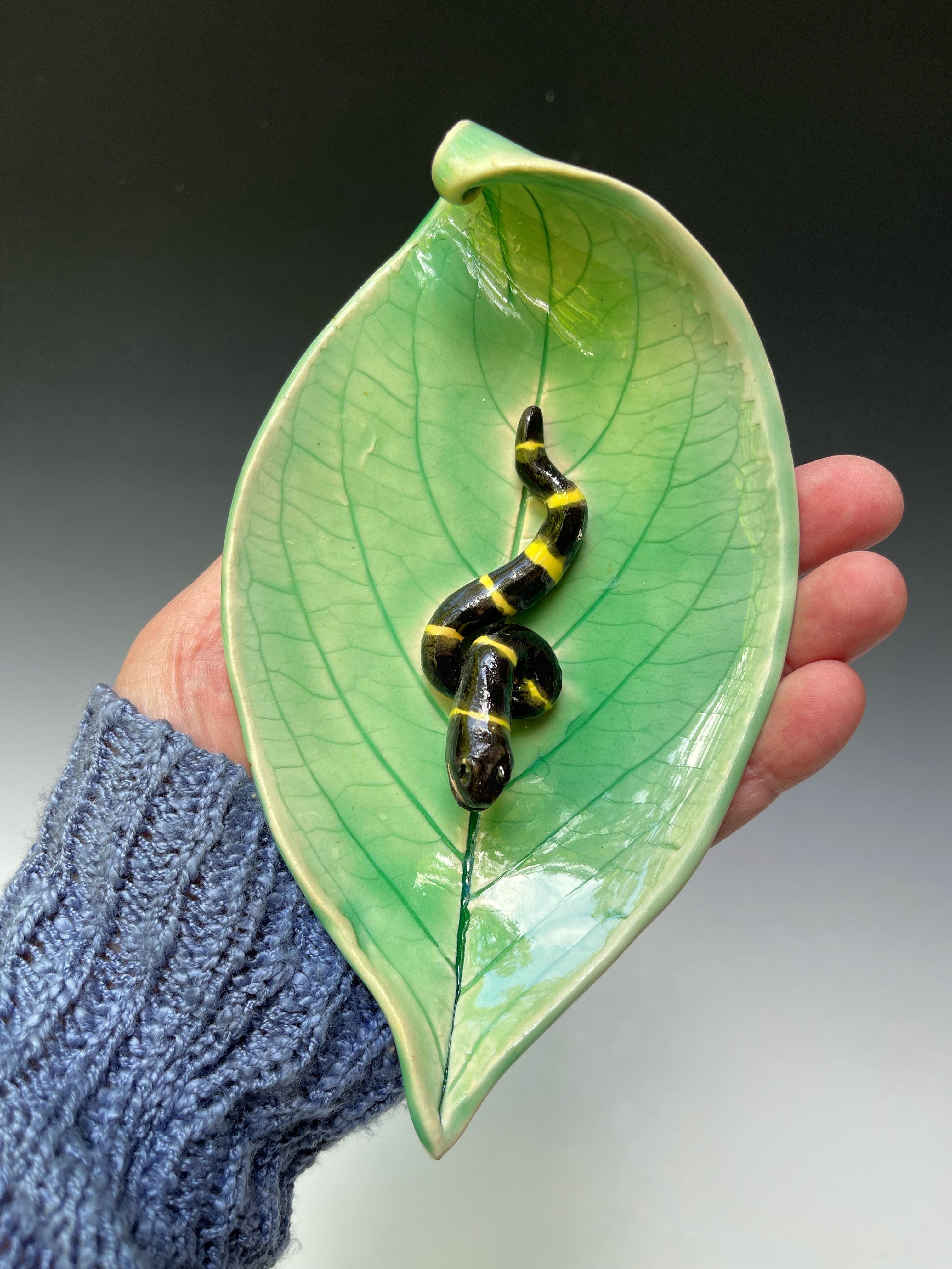 Leaf plate with curl and a slithering snake. Perfect for serving, candles, soap dish