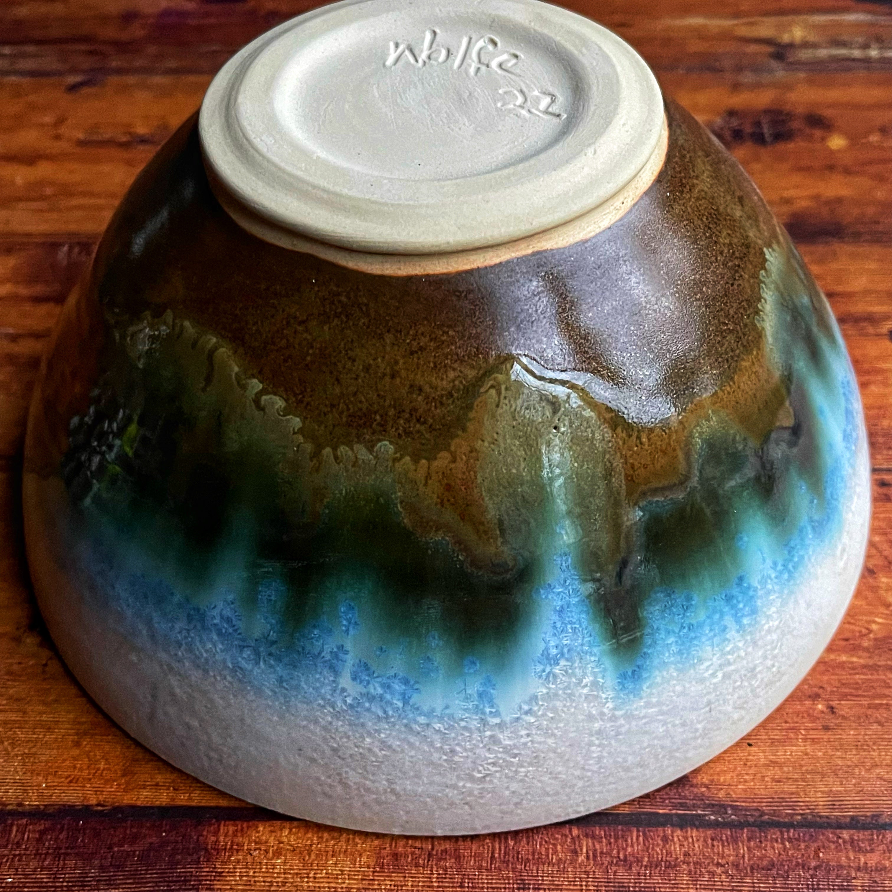 Large soup bowls in beautiful glazes, inside and out. Soup, salad, or rice bowls are often a meal in our home.