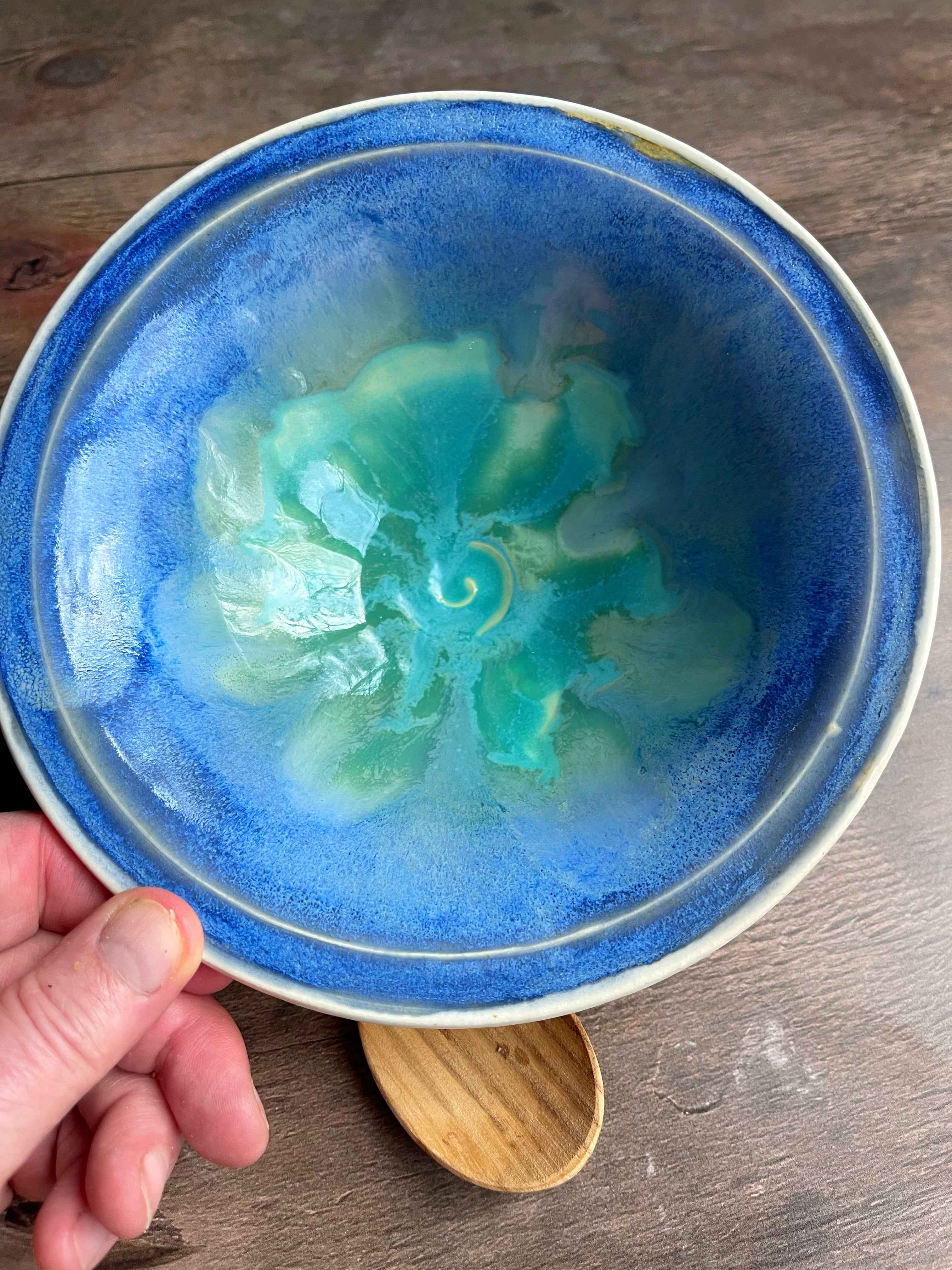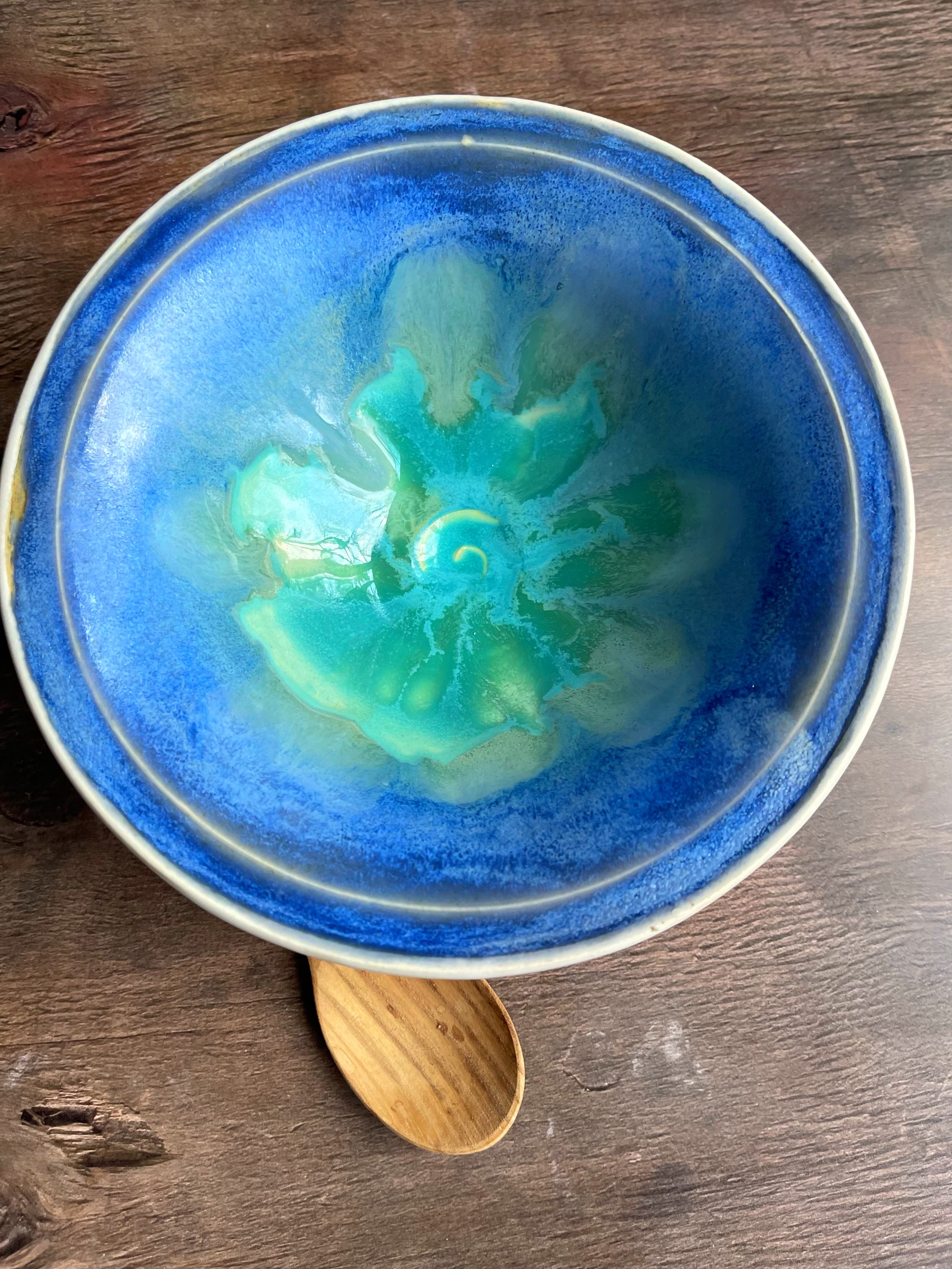 Bowl perfect for soup or salad. Multiple glazes with beautiful mandala pattern.