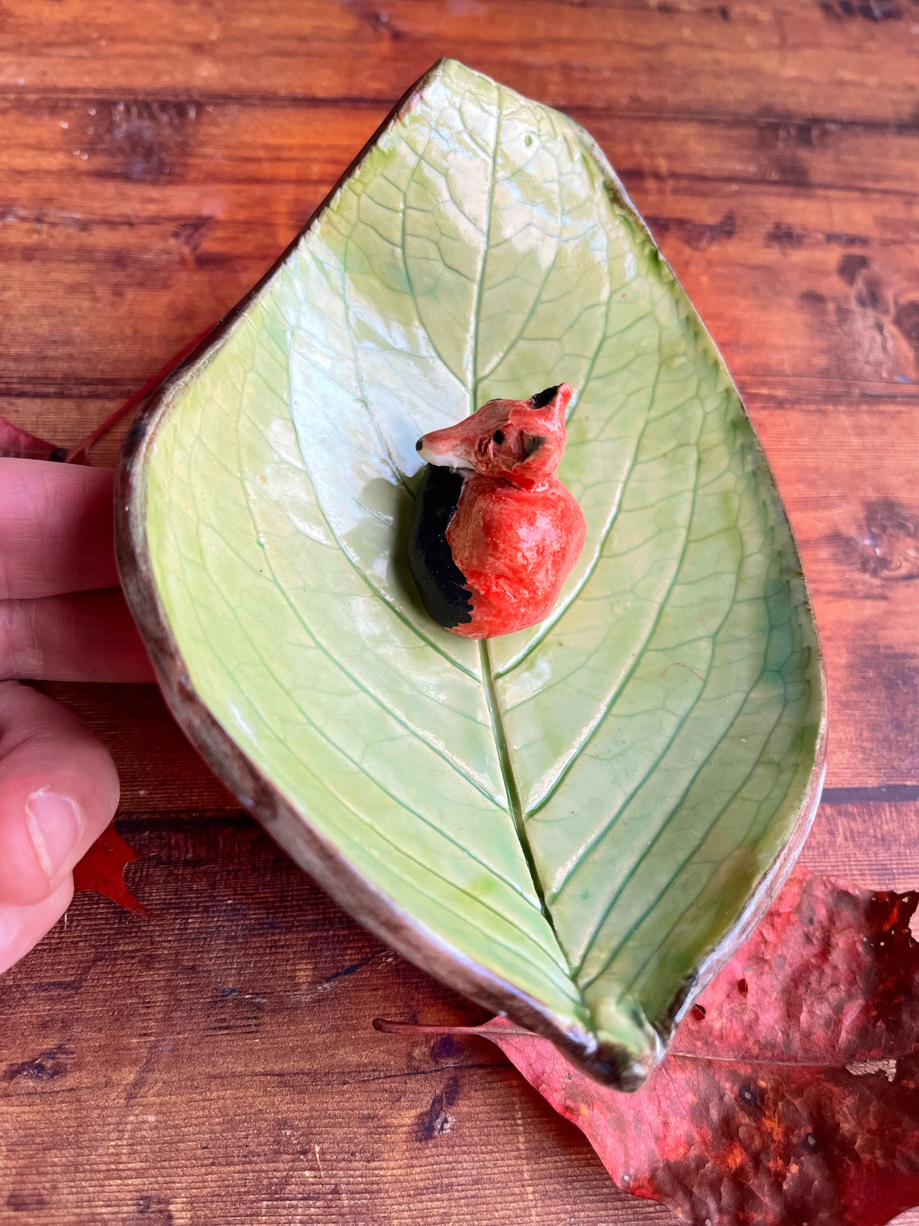 Curly Leaf plate with a sleepy fox. Perfect for candles, trinkets, spoon rest