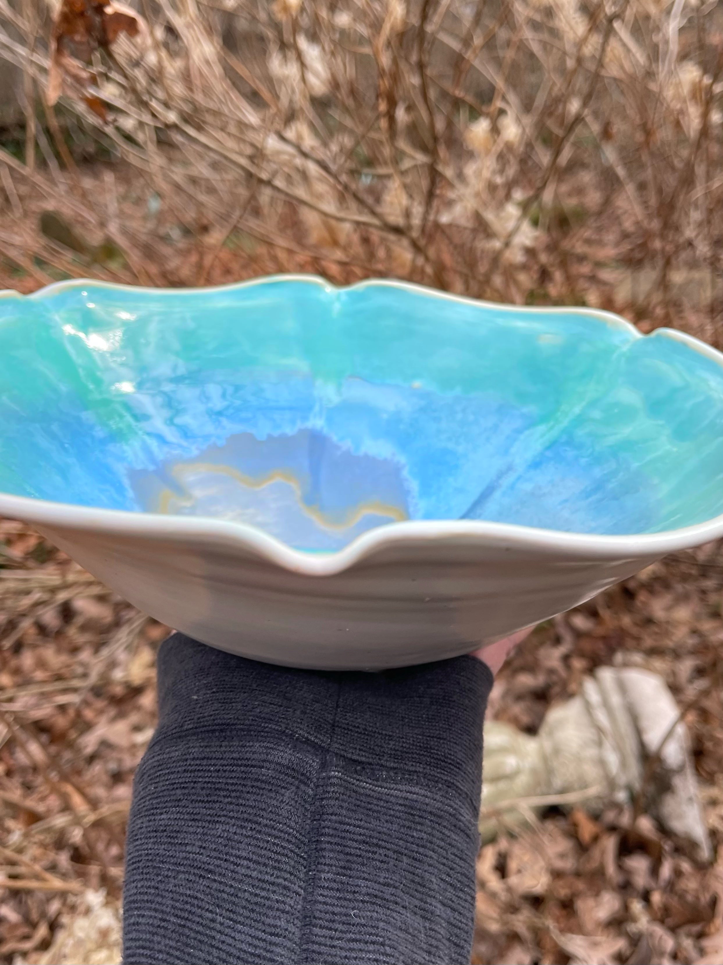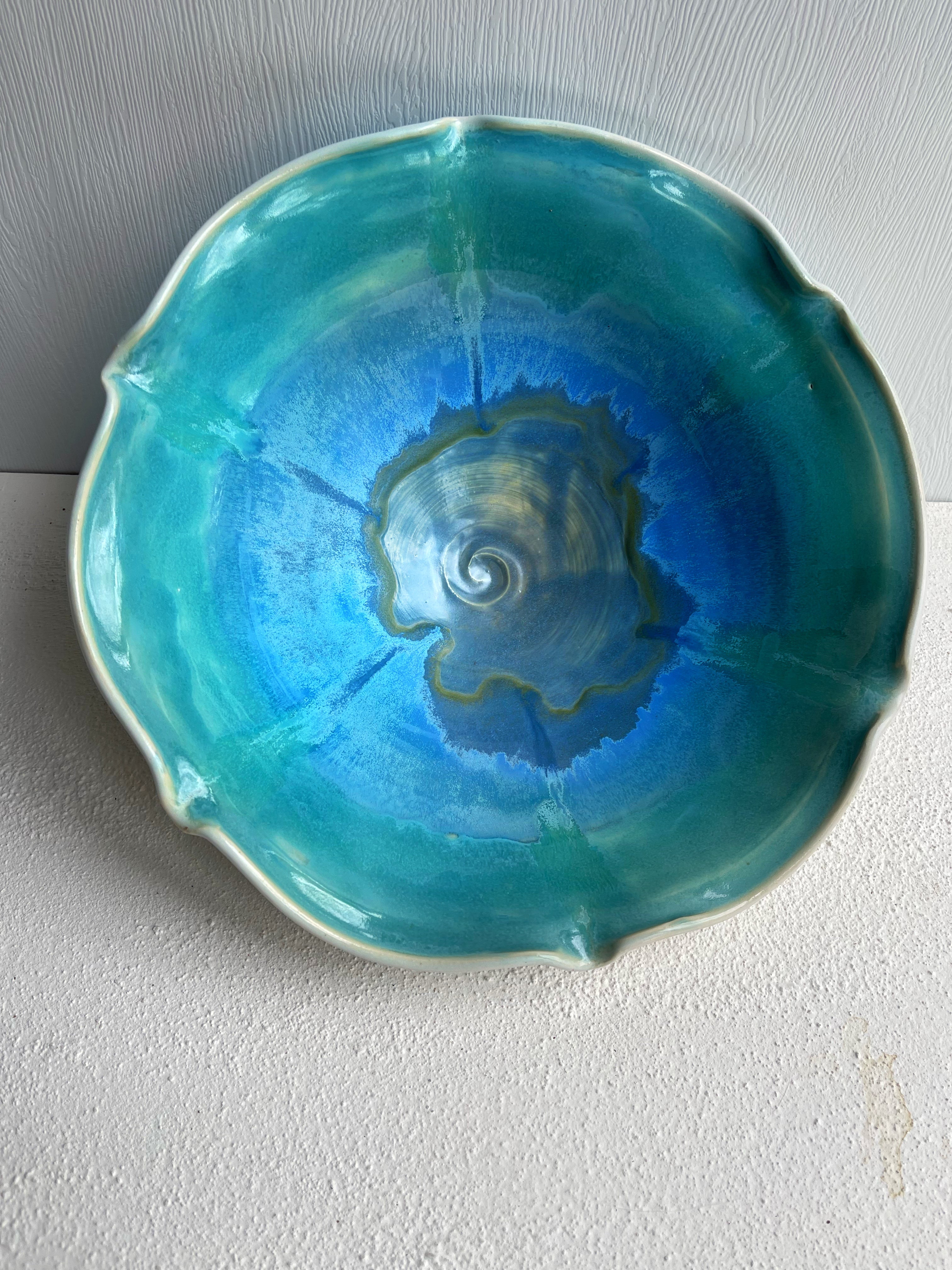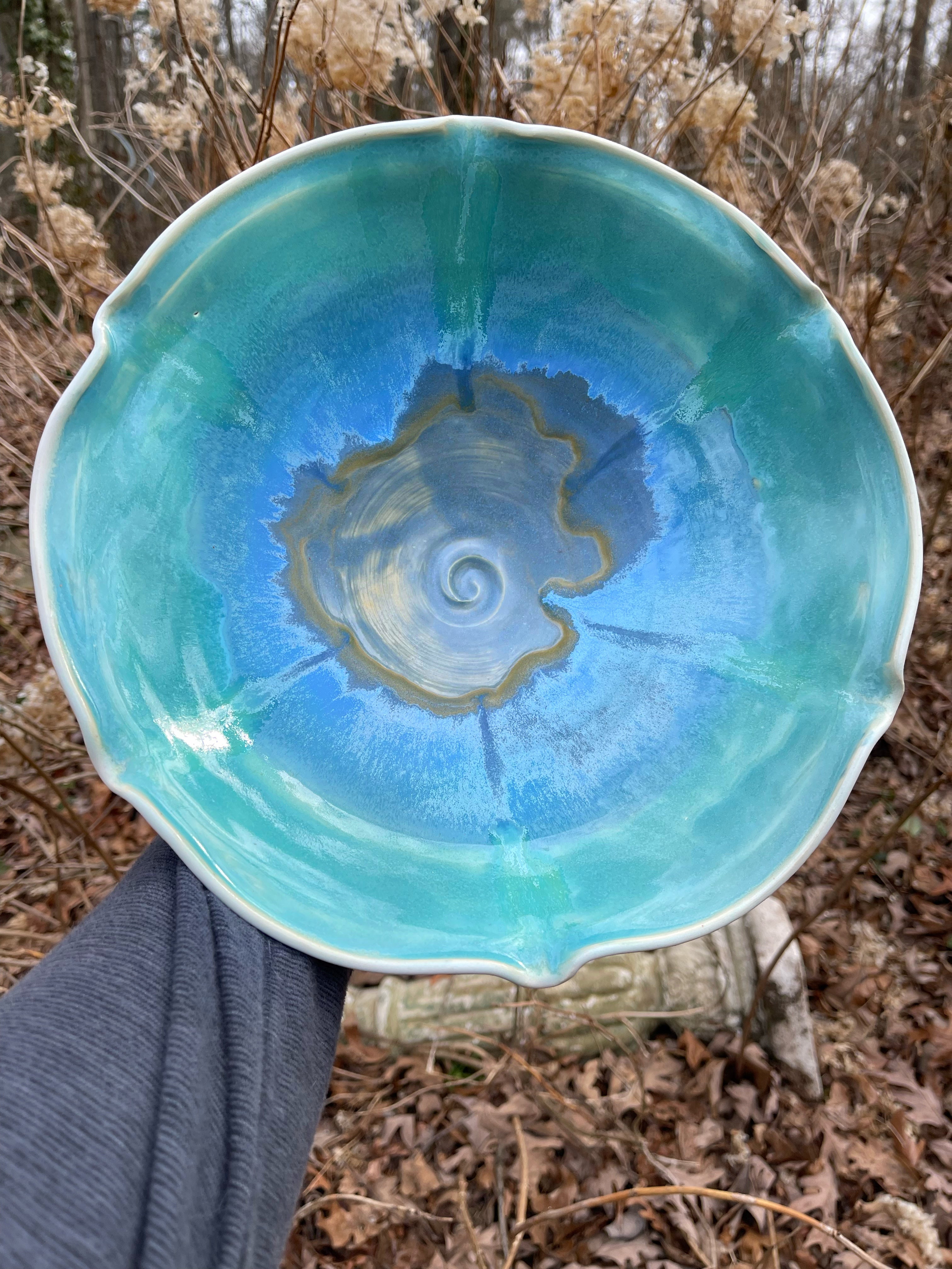 Wheel thrown bowl with glaze mandala. Very beautiful