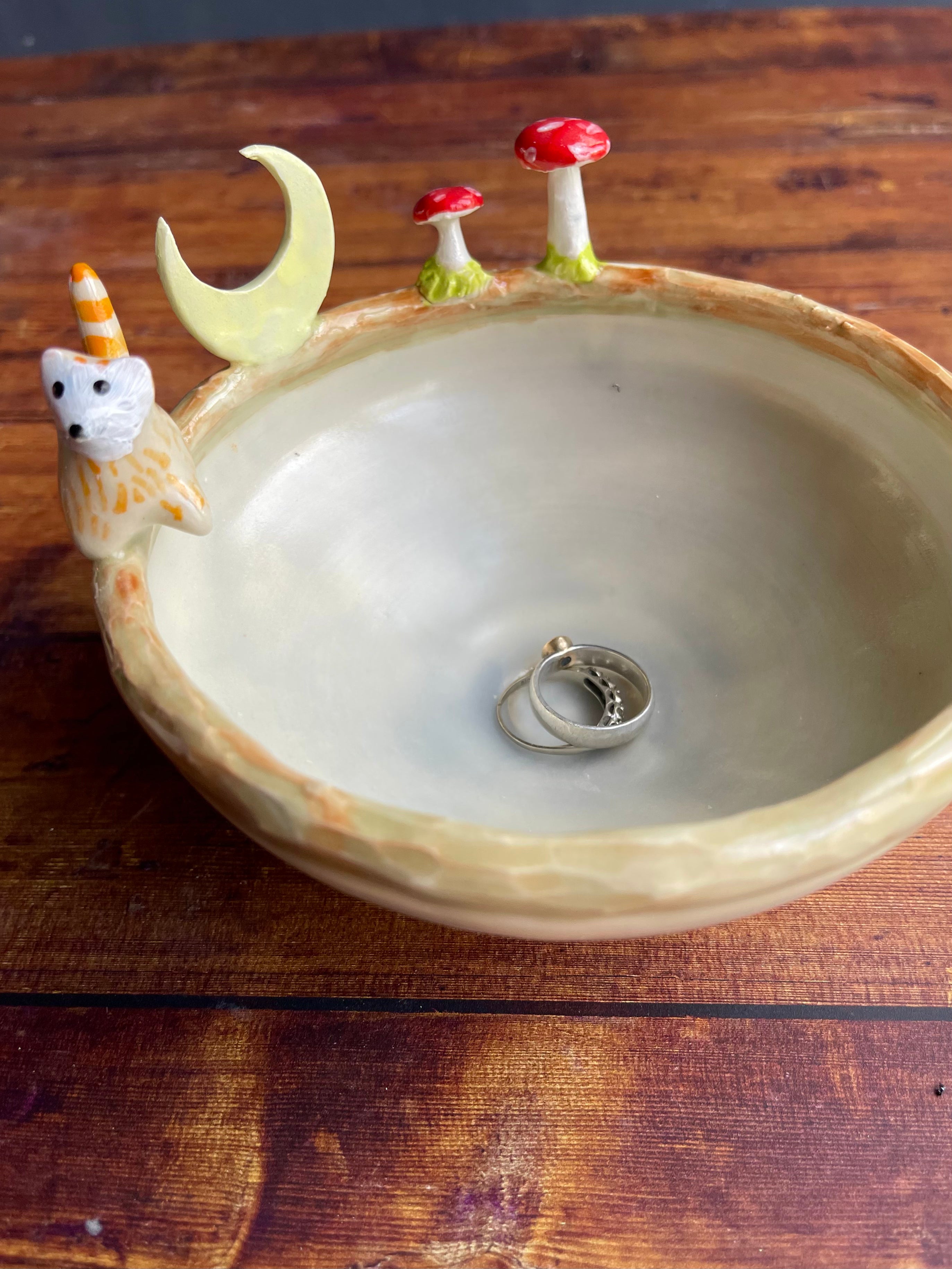 Wheel thrown bowl with sculptered rim. A prototype that is adorable!